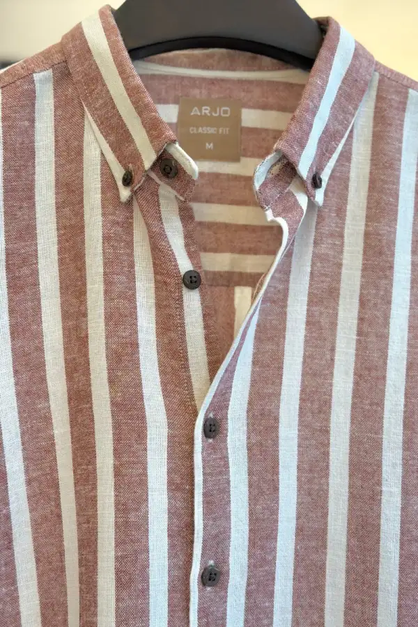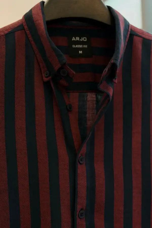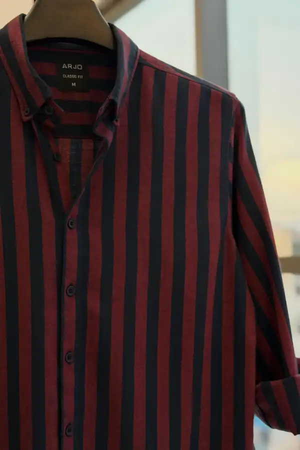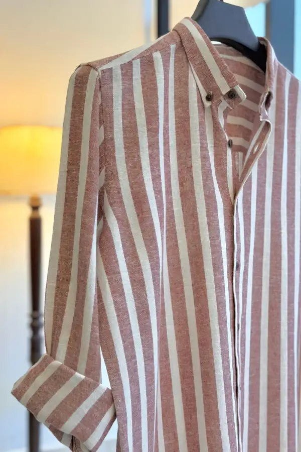 Warm Brick Red Base With off-white Vertical Stripes Shirt