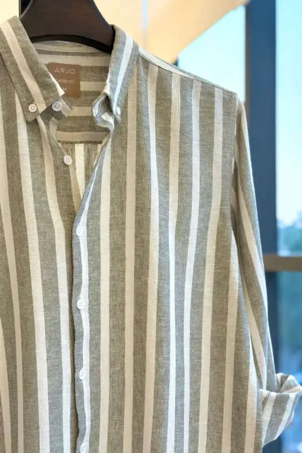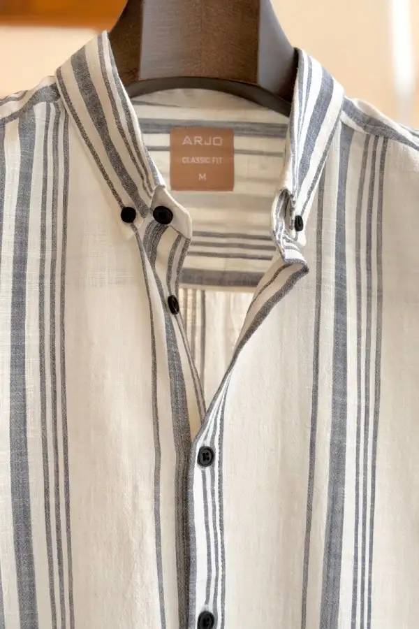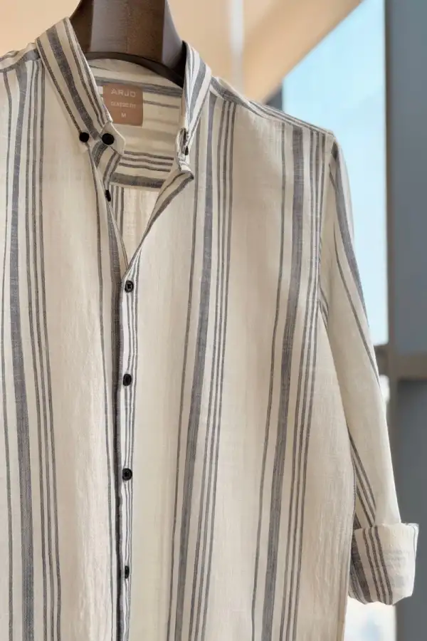Soft Ivory Base & Charcoal Grey Vertical Stripes Shirt