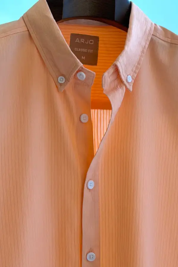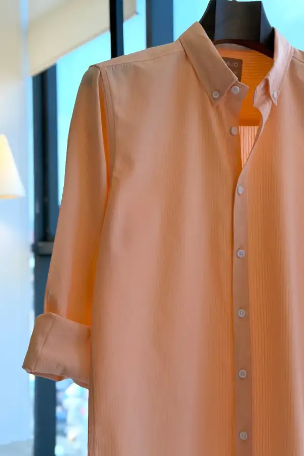 Soft Peachy-Orange Solid Tone Textured Shirt