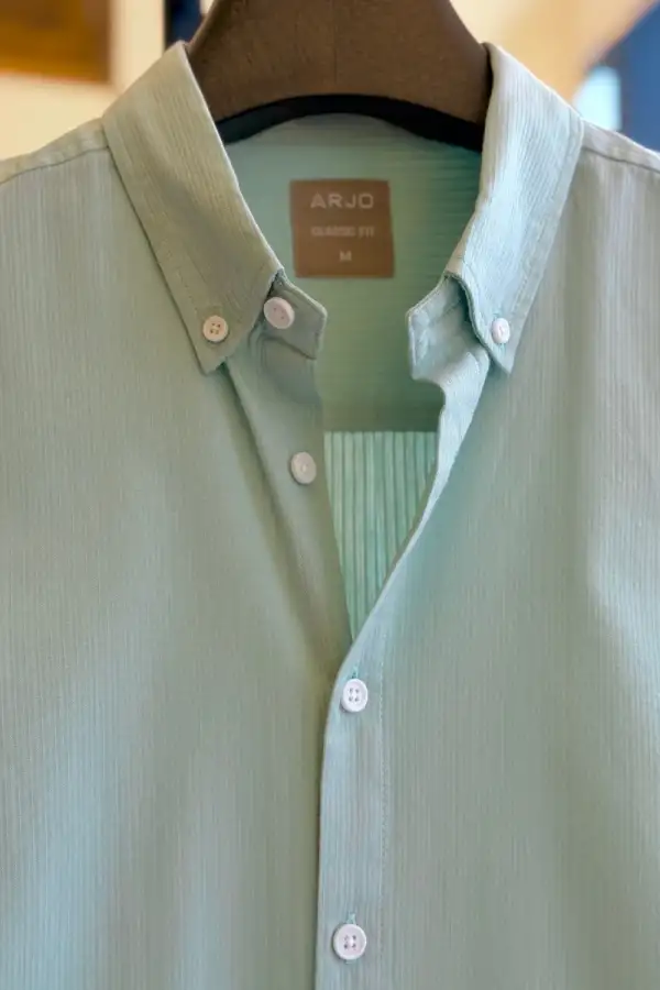 Soft Pastel Mint Tone With Texture & Crisp Shirt