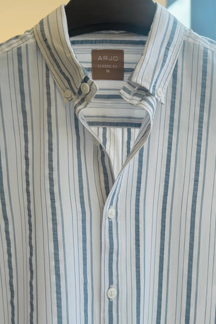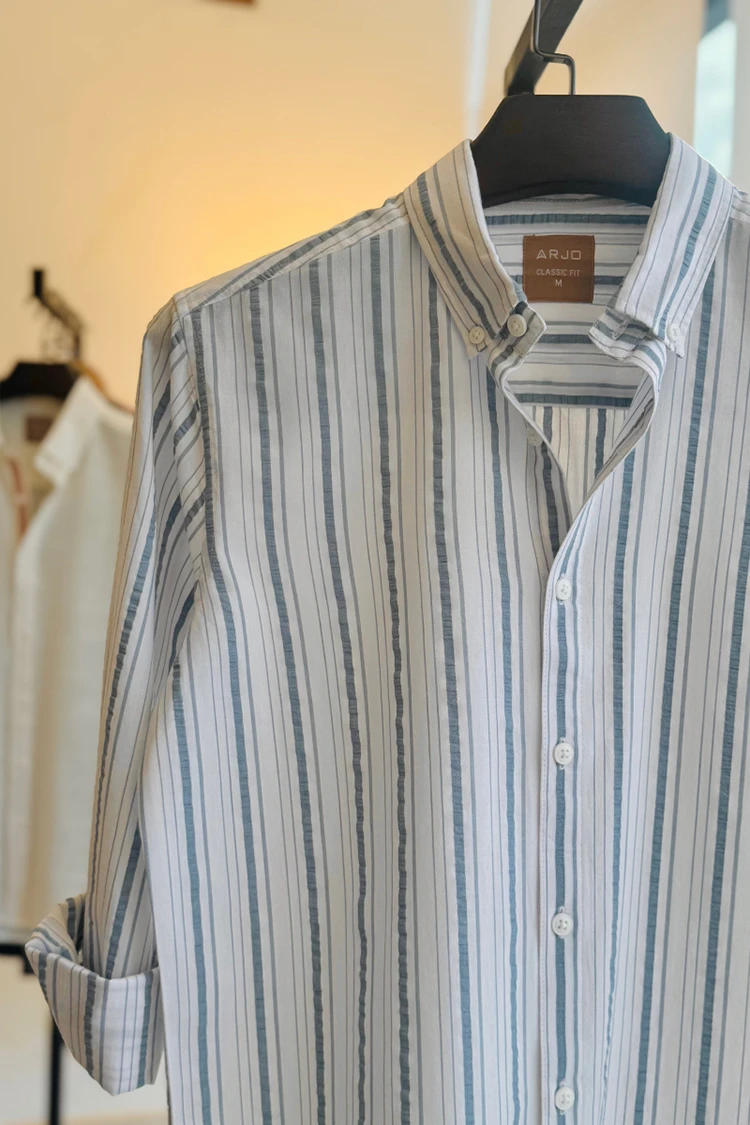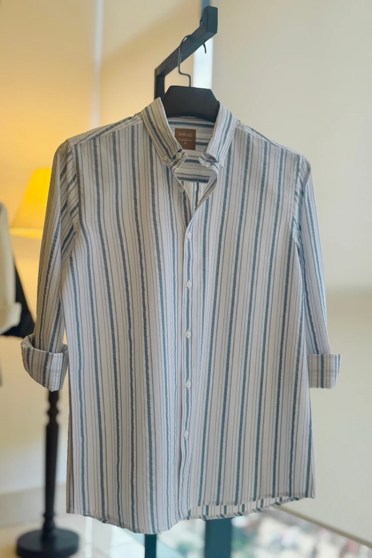 The Ocean Breeze Lines White Shirt from Arjo is the perfect choice for effortless summer style. Crafted for comfort and breathability, this lightweight shirt keeps you cool during warmer days. With its relaxed fit and timeless stripes, it’s ideal for both casual outings and laid-back occasions. If you're looking for premium Full-sleeve shirts for men in BD, this versatile piece is a must-have. Stay stylish and comfortable all season long with Arjo.
