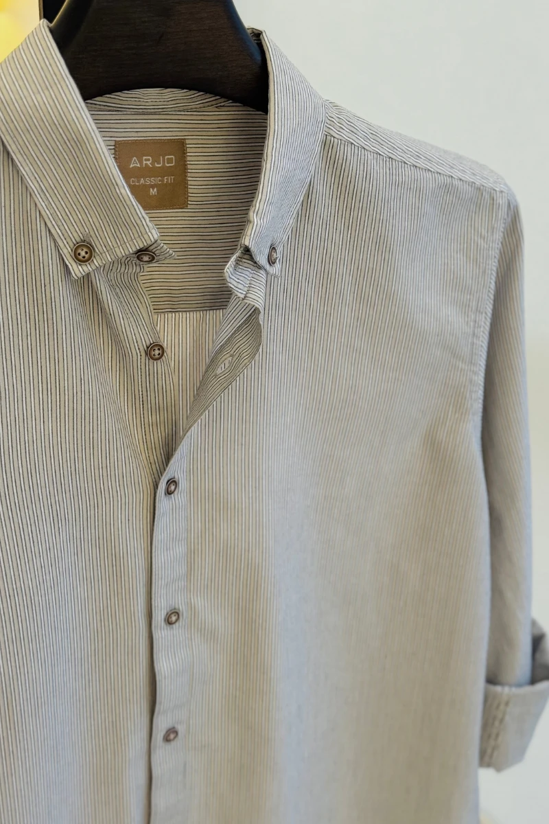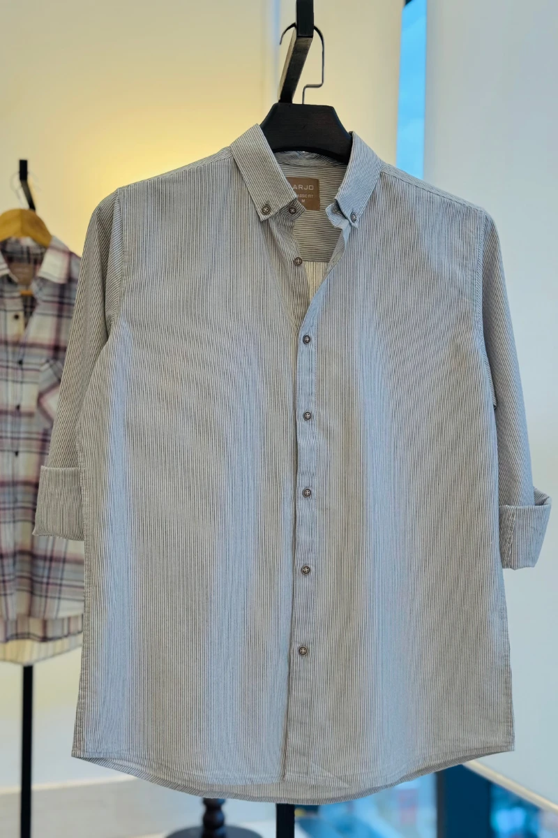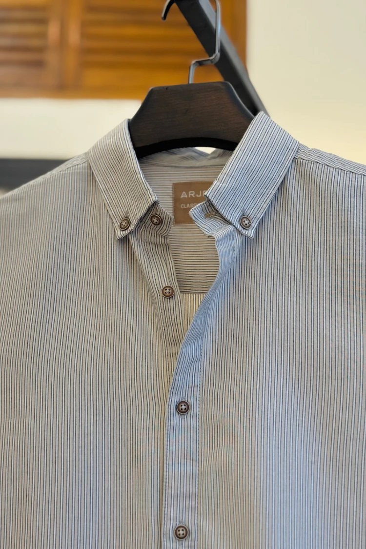 The Stone Blue Shirt with Subtle Black Stripes from Arjo is the perfect choice for effortless summer style. Crafted for comfort and breathability, this lightweight shirt keeps you cool during warmer days. With its relaxed fit and timeless stripes, it’s ideal for both casual outings and laid-back occasions. If you're looking for premium Full-sleeve shirts for men in BD, this versatile piece is a must-have. Stay stylish and comfortable all season long with Arjo.