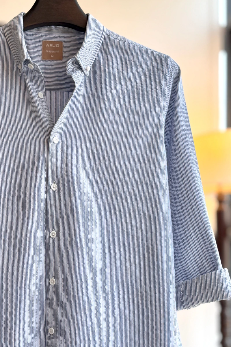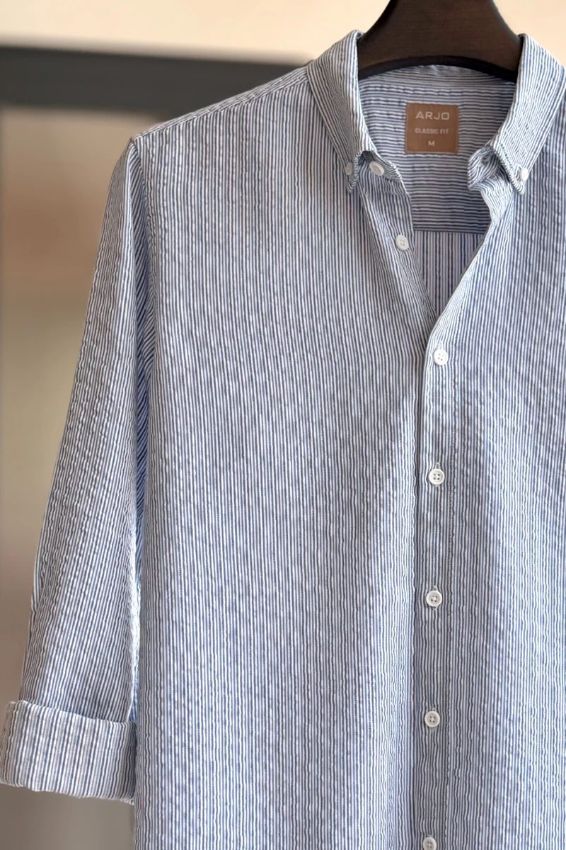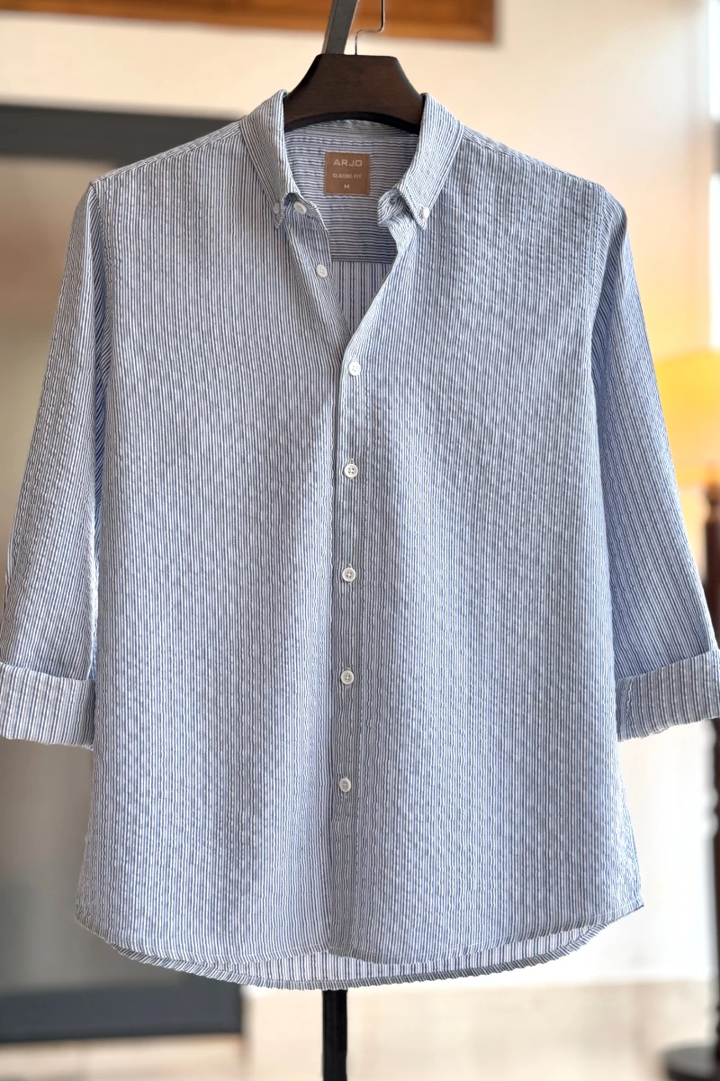 The Blue with White Pinstriped Shirt from Arjo is the perfect choice for effortless summer style. Crafted for comfort and breathability, this lightweight shirt keeps you cool during warmer days. With its relaxed fit and timeless stripes, it’s ideal for both casual outings and laid-back occasions. If you're looking for premium Full-sleeve shirts for men in BD, this versatile piece is a must-have. Stay stylish and comfortable all season long with Arjo.