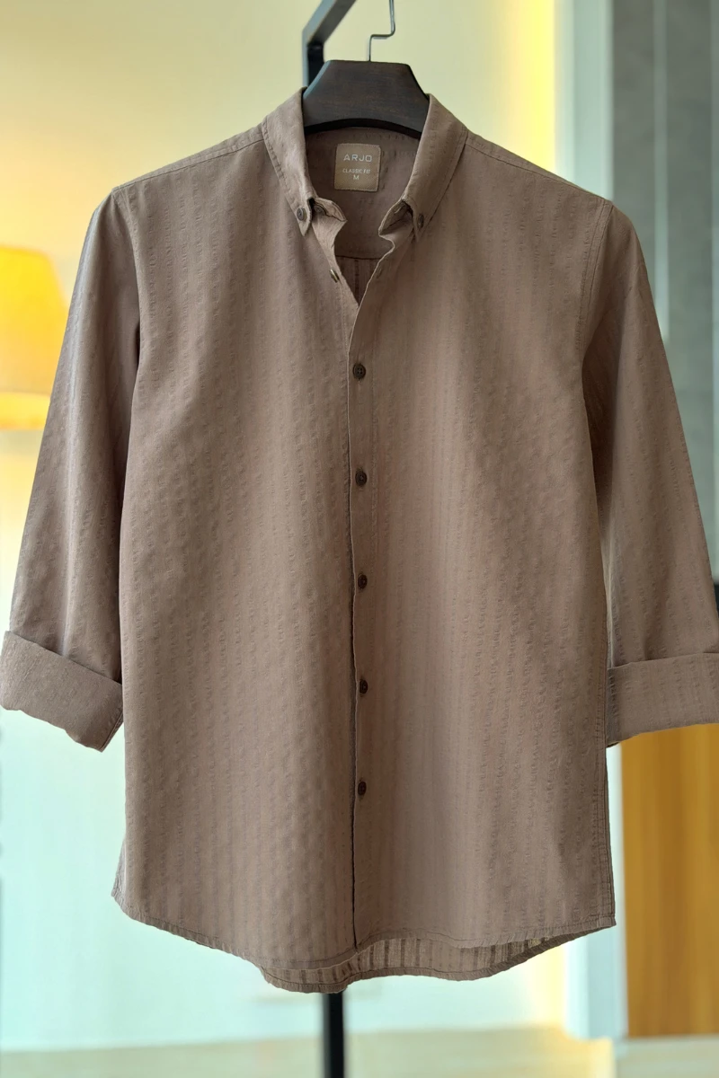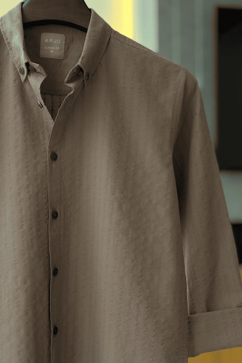 The Brownish Gray Seersucker Shirt from Arjo is the perfect choice for effortless summer style. Crafted for comfort and breathability, this lightweight shirt keeps you cool during warmer days. With its relaxed fit and timeless stripes, it’s ideal for both casual outings and laid-back occasions. If you're looking for premium Full-sleeve shirts for men in BD, this versatile piece is a must-have. Stay stylish and comfortable all season long with Arjo.