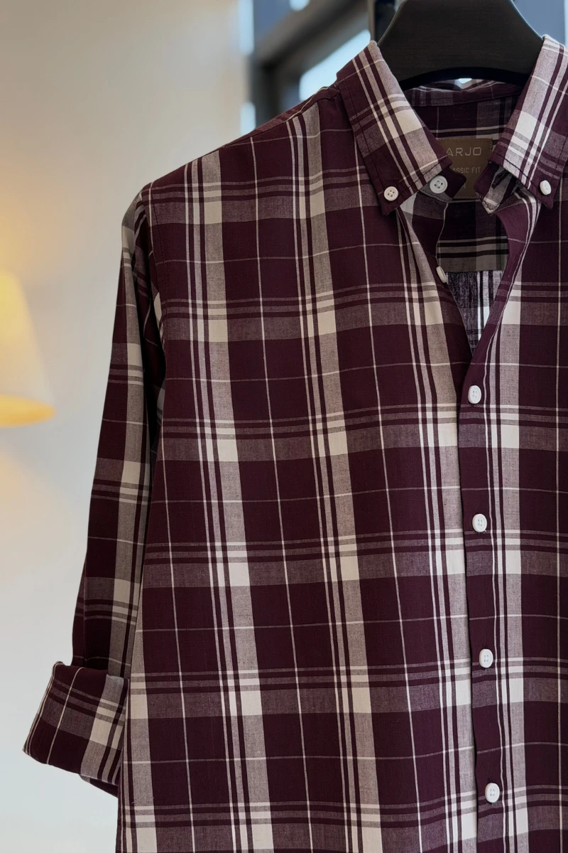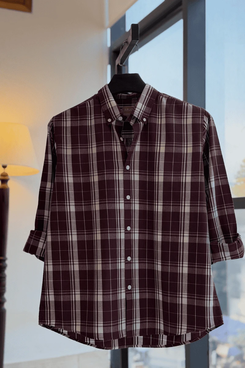 The Burgundy And White Plaid Shirt from Arjo is the perfect choice for effortless summer style. Crafted for comfort and breathability, this lightweight shirt keeps you cool during warmer days. With its relaxed fit and timeless stripes, it’s ideal for both casual outings and laid-back occasions. If you're looking for premium Full-sleeve shirts for men in BD, this versatile piece is a must-have. Stay stylish and comfortable all season long with Arjo.