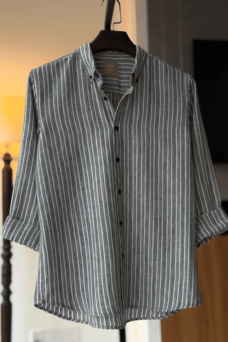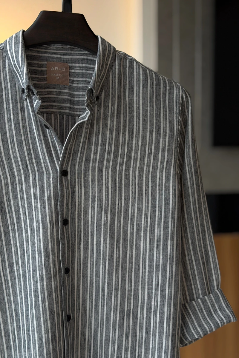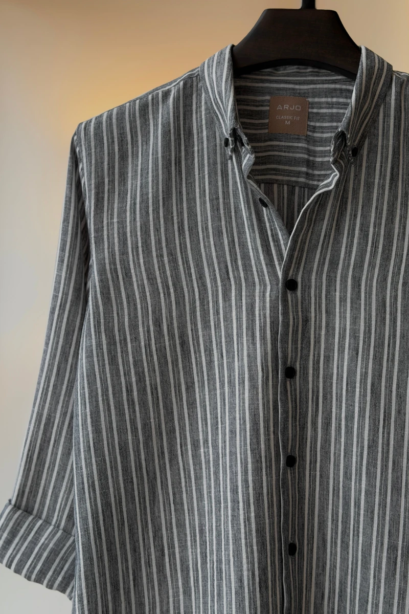 The Charcoal Grey With White Stripes Shirt from Arjo is the perfect choice for effortless summer style. Crafted for comfort and breathability, this lightweight shirt keeps you cool during warmer days. With its relaxed fit and timeless stripes, it’s ideal for both casual outings and laid-back occasions. If you're looking for premium Full-sleeve shirts for men in BD, this versatile piece is a must-have. Stay stylish and comfortable all season long with Arjo.