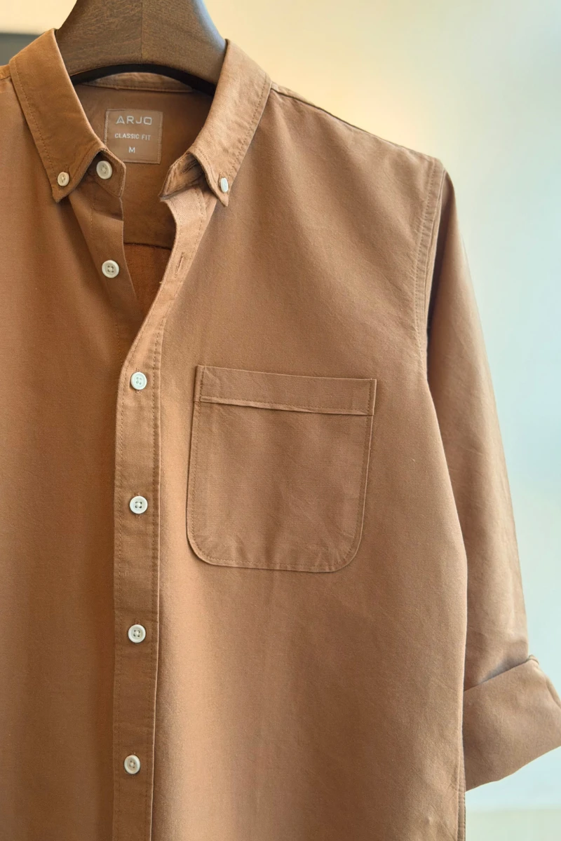 The Charleston Brown Oxford Cotton Shirt from Arjo is the perfect choice for effortless summer style. Crafted for comfort and breathability, this lightweight shirt keeps you cool during warmer days. With its relaxed fit and timeless stripes, it’s ideal for both casual outings and laid-back occasions. If you're looking for premium Full-sleeve shirts for men in BD, this versatile piece is a must-have. Stay stylish and comfortable all season long with Arjo.Fabrics : oxford cotton,GSM : 130/140.