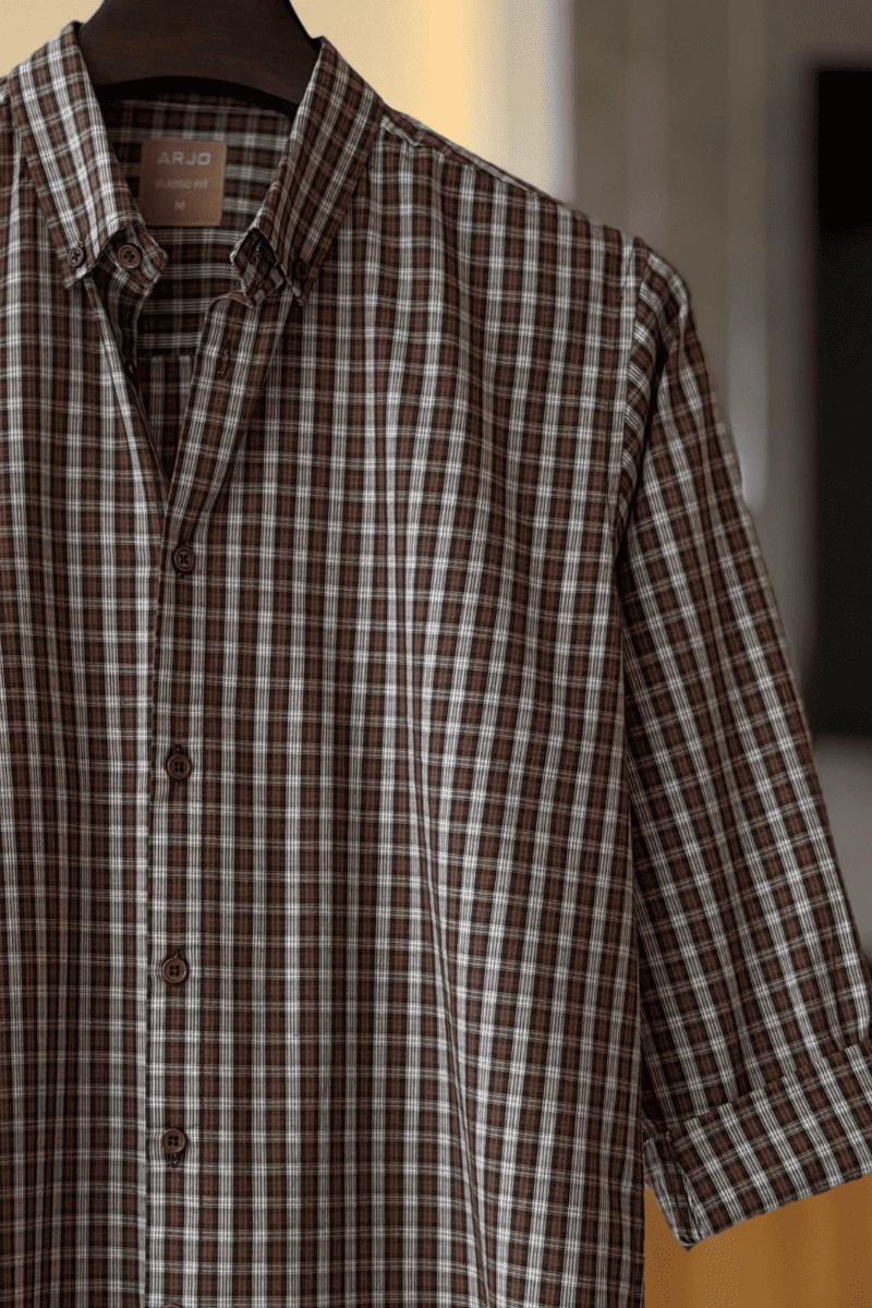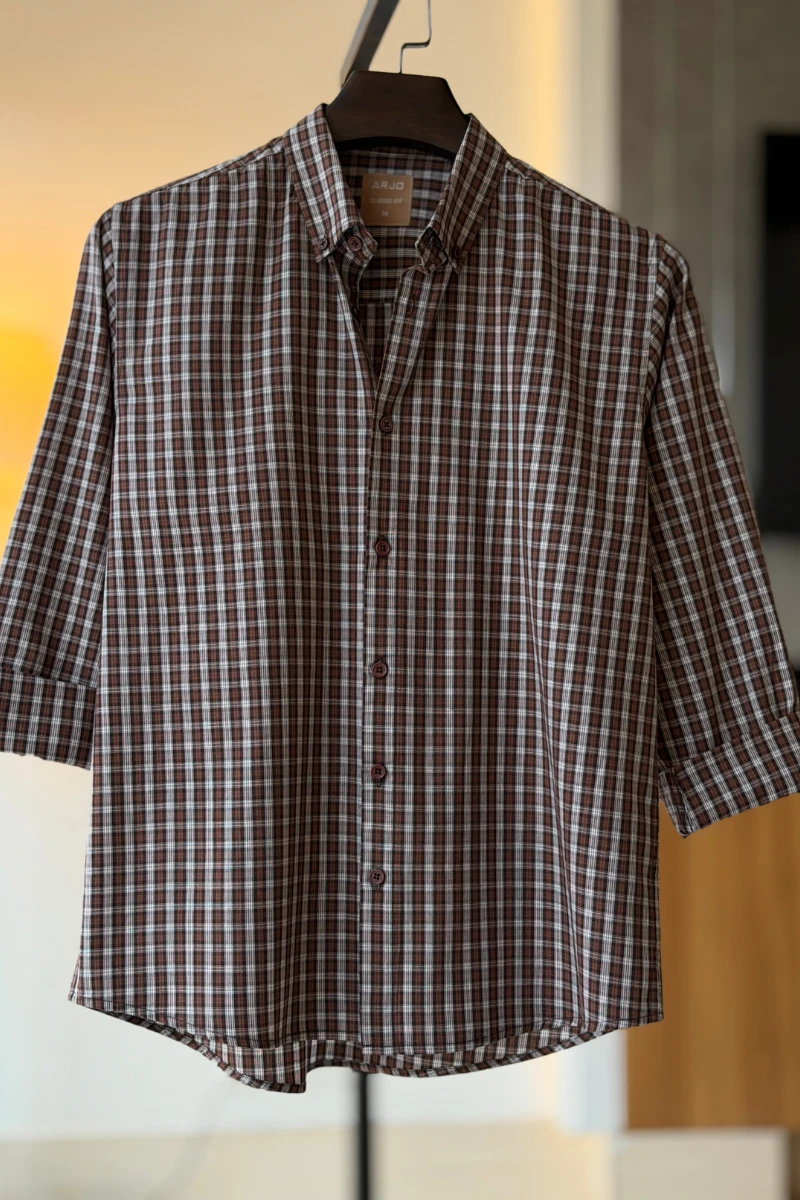 The Chocolate Brown & White Checked Shirt from Arjo is the perfect choice for effortless summer style. Crafted for comfort and breathability, this lightweight shirt keeps you cool during warmer days. With its relaxed fit and timeless stripes, it’s ideal for both casual outings and laid-back occasions. If you're looking for premium Full-sleeve shirts for men in BD, this versatile piece is a must-have. Stay stylish and comfortable all season long with Arjo.