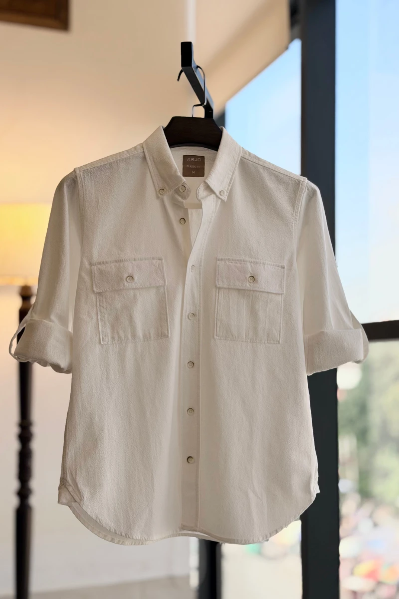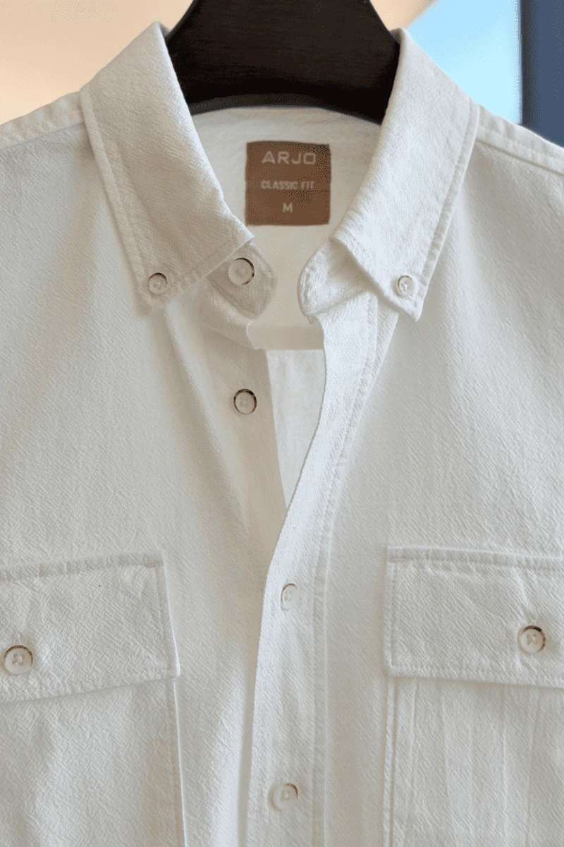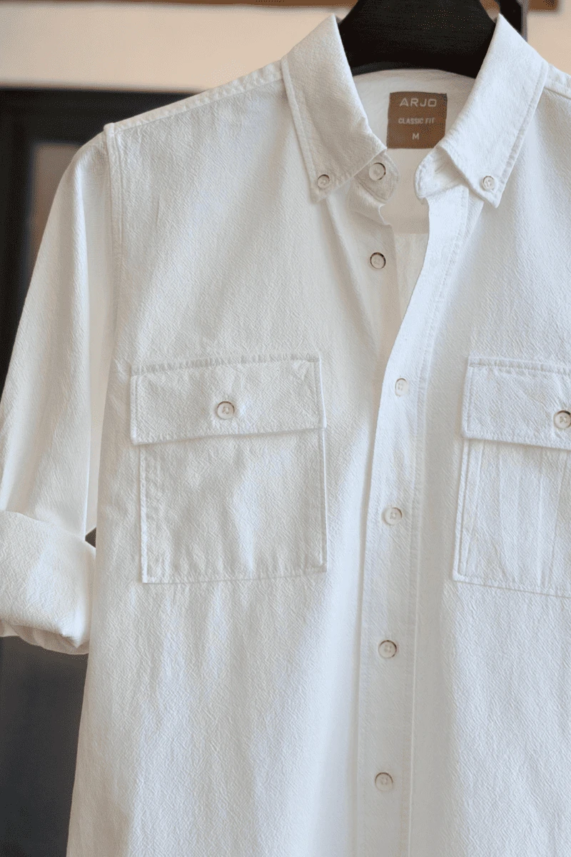 The Classic Ivory Double-Pocket Shirt from Arjo is the perfect choice for effortless winter style. Premium Herringbone Dobby Cotton Crafted for comfort and breathability, this lightweight shirt keeps you warm during cold days. With its relaxed fit and timeless stripes, it’s ideal for both casual outings and laid-back occasions. If you're looking for premium Full-sleeve shirts for men in BD, this versatile piece is a must-have. Stay stylish and comfortable all season long with Arjo.