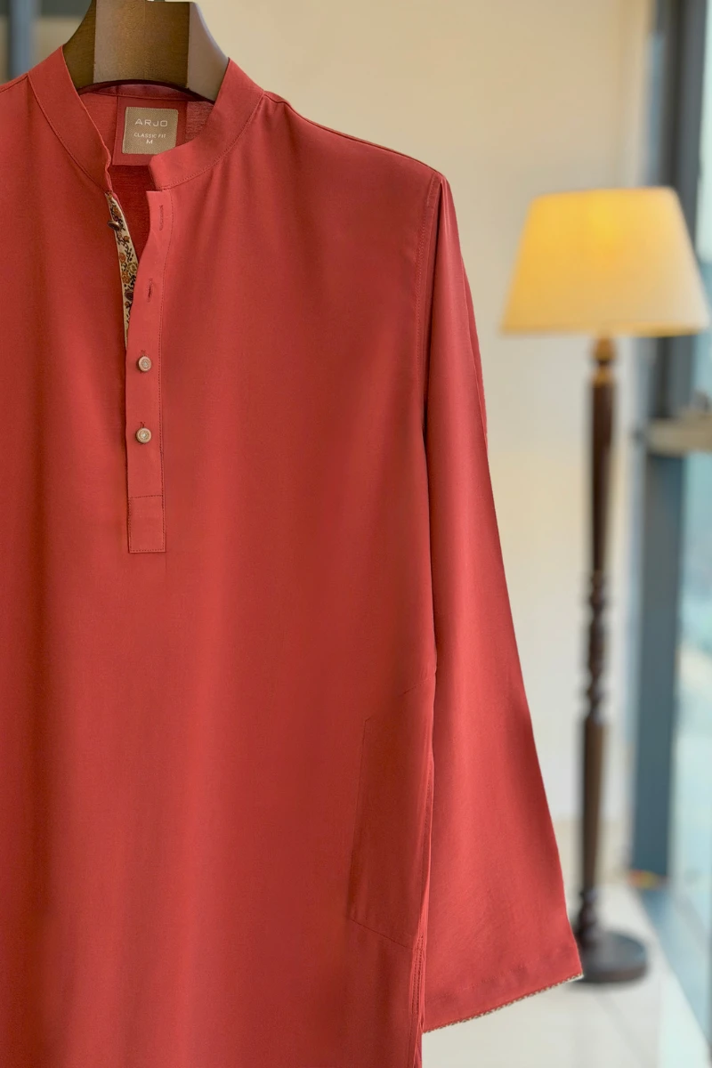 Experience timeless elegance with Arjo’s Classic Terracotta Panjabi with Embroidered Placket This Panjabi offers a breathable, soft feel, ensuring effortless wear throughout the day. Designed with a tailored fit, it seamlessly blends tradition with modern sophistication, making it perfect for any occasion, be it casual gatherings or festive celebrations. If you're looking for high-quality Punjabi for men in BD, this refined piece is a must-have in your collection. Elevate your style with Arjo today! Fabrics : cotton blend