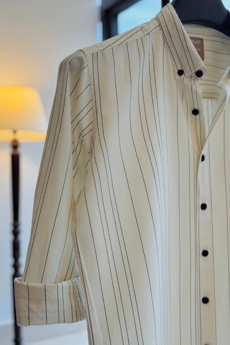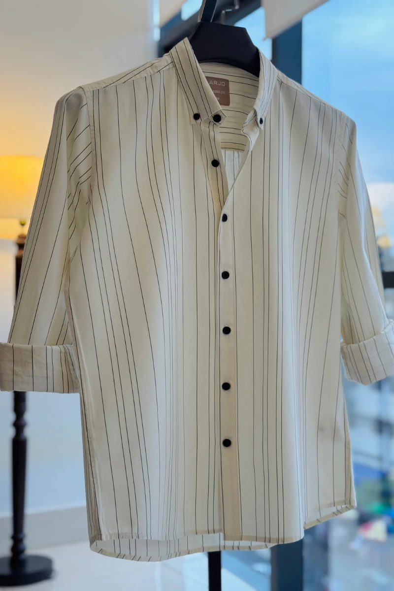 The Classic White Shirt with Black Pinstripes from Arjo is the perfect choice for effortless summer style. Crafted for comfort and breathability, this lightweight shirt keeps you cool during warmer days. With its relaxed fit and timeless stripes, it’s ideal for both casual outings and laid-back occasions. If you're looking for premium Full-sleeve shirts for men in BD, this versatile piece is a must-have. Stay stylish and comfortable all season long with Arjo.
