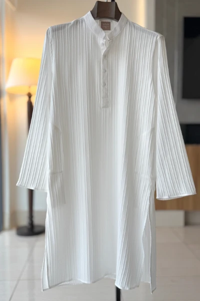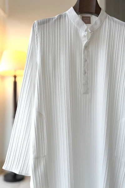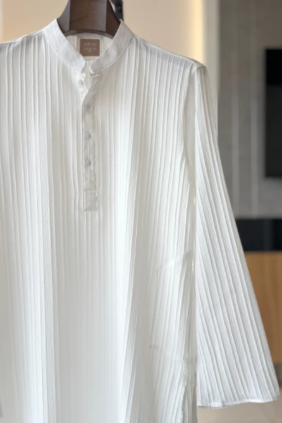 Experience timeless elegance with Arjo’s Classic White Textured Stripe Panjabi This Panjabi offers a breathable, soft feel, ensuring effortless wear throughout the day. Designed with a tailored fit, it seamlessly blends tradition with modern sophistication, making it perfect for any occasion, be it casual gatherings or festive celebrations. If you're looking for high-quality Punjabi for men in BD, this refined piece is a must-have in your collection. Elevate your style with Arjo today!