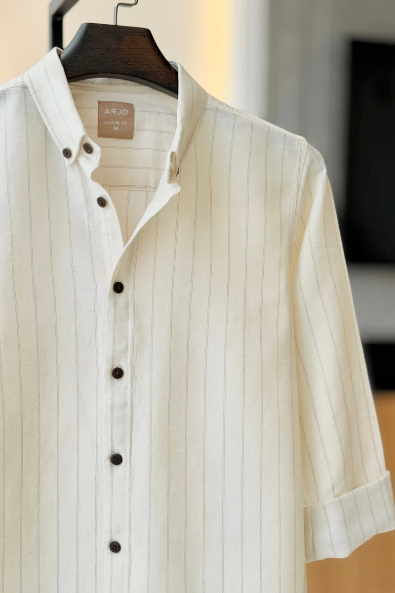 The Cream With Beige Stripes Shirt from Arjo is the perfect choice for effortless summer style. Crafted for comfort and breathability, this lightweight shirt keeps you cool during warmer days. With its relaxed fit and timeless stripes, it’s ideal for both casual outings and laid-back occasions. If you're looking for premium Full-sleeve shirts for men in BD, this versatile piece is a must-have. Stay stylish and comfortable all season long with Arjo.