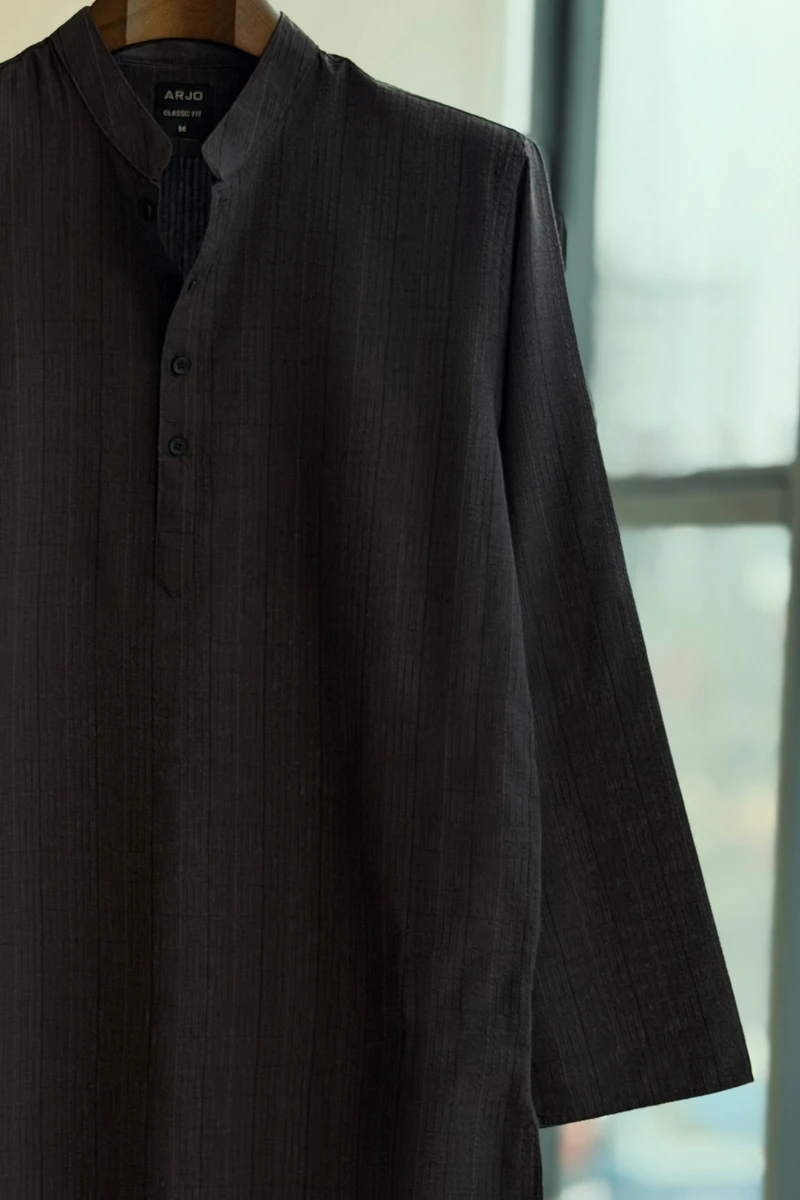 Experience timeless elegance with Arjo’s Dark Ash Grey Grid Stripes Panjabi This Panjabi offers a breathable, soft feel, ensuring effortless wear throughout the day. Designed with a tailored fit, it seamlessly blends tradition with modern sophistication, making it perfect for any occasion, be it casual gatherings or festive celebrations. If you're looking for high-quality Punjabi for men in BD, this refined piece is a must-have in your collection. Elevate your style with Arjo today!