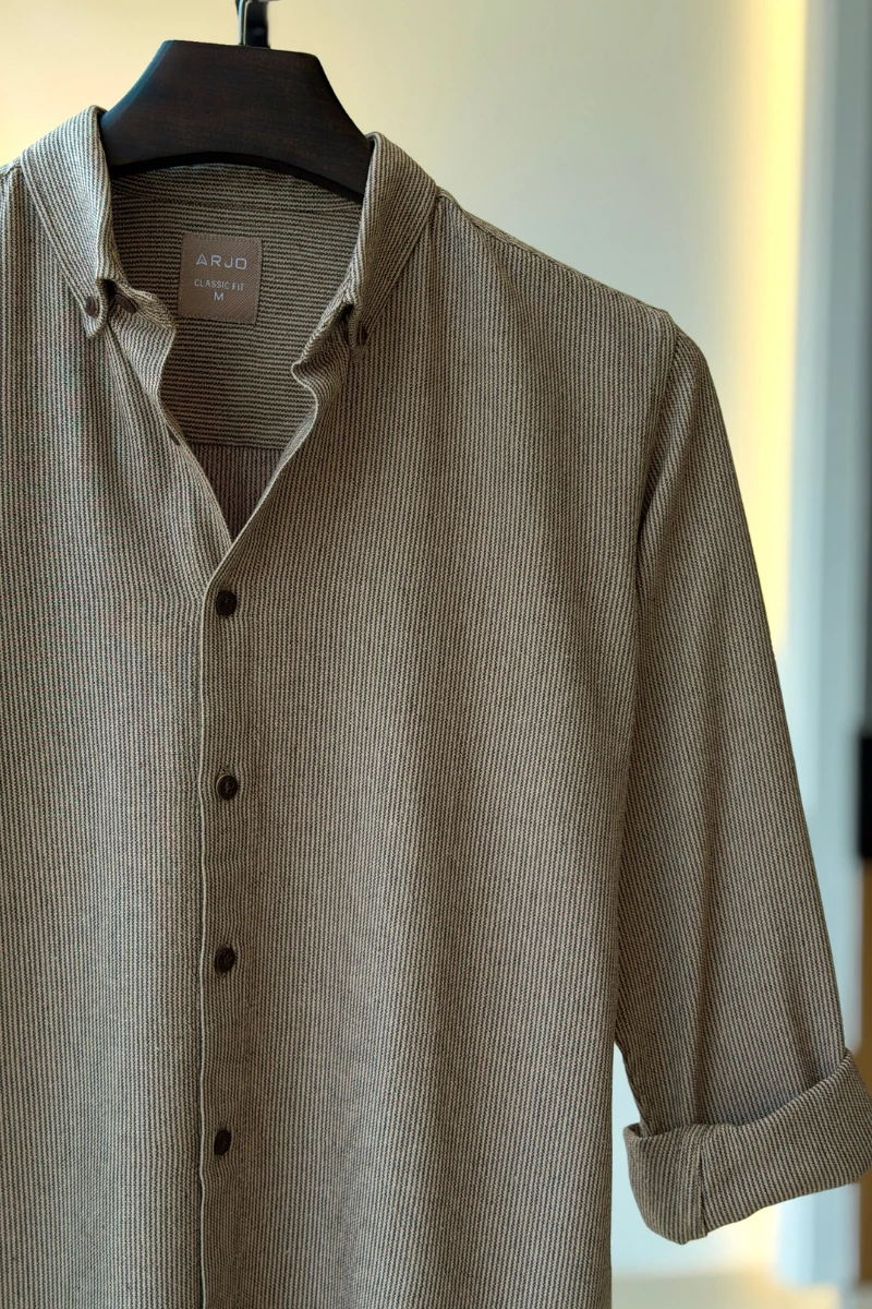 The Dark Beige with Dark Chocolate Pinstriped Shirt from Arjo is the perfect choice for effortless summer style. Crafted for comfort and breathability, this lightweight shirt keeps you cool during warmer days. With its relaxed fit and timeless stripes, it’s ideal for both casual outings and laid-back occasions. If you're looking for premium Full-sleeve shirts for men in BD, this versatile piece is a must-have. Stay stylish and comfortable all season long with Arjo.