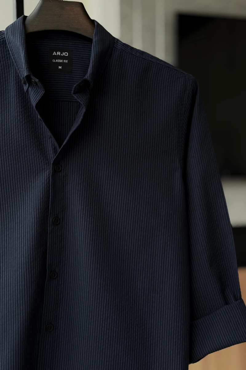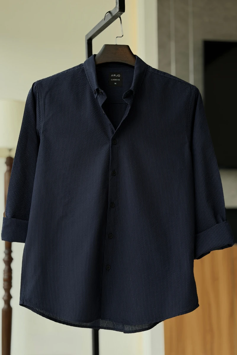 The Dark Blue With Tonal Stripes Shirt from Arjo is the perfect choice for effortless summer style. Crafted for comfort and breathability, this lightweight shirt keeps you cool during warmer days. With its relaxed fit and timeless stripes, it’s ideal for both casual outings and laid-back occasions. If you're looking for premium Full-sleeve shirts for men in BD, this versatile piece is a must-have. Stay stylish and comfortable all season long with Arjo.