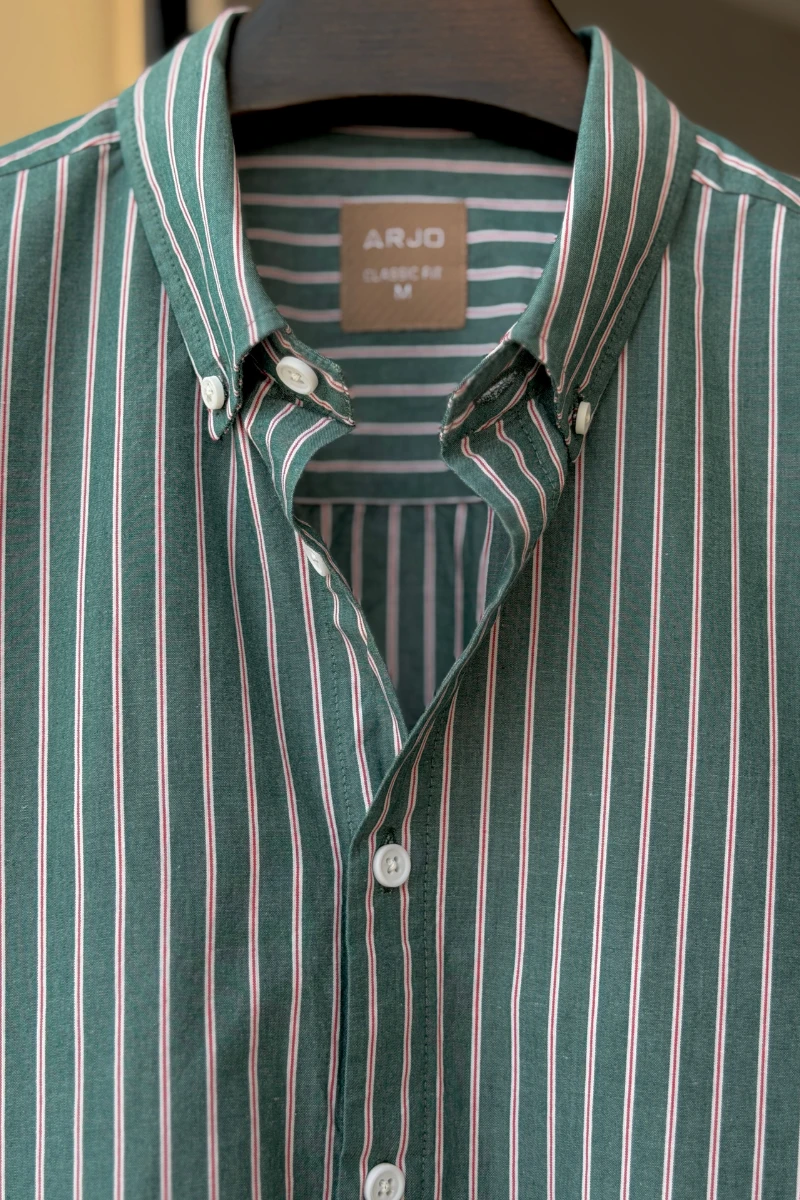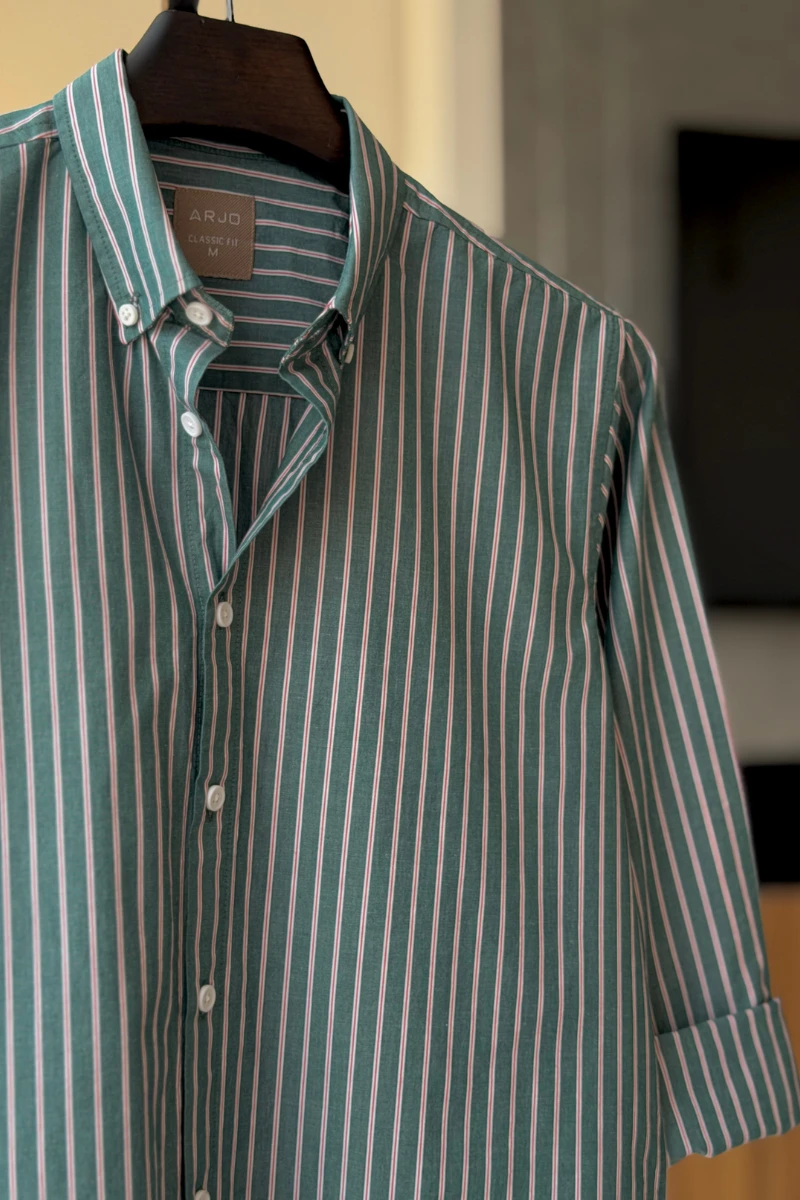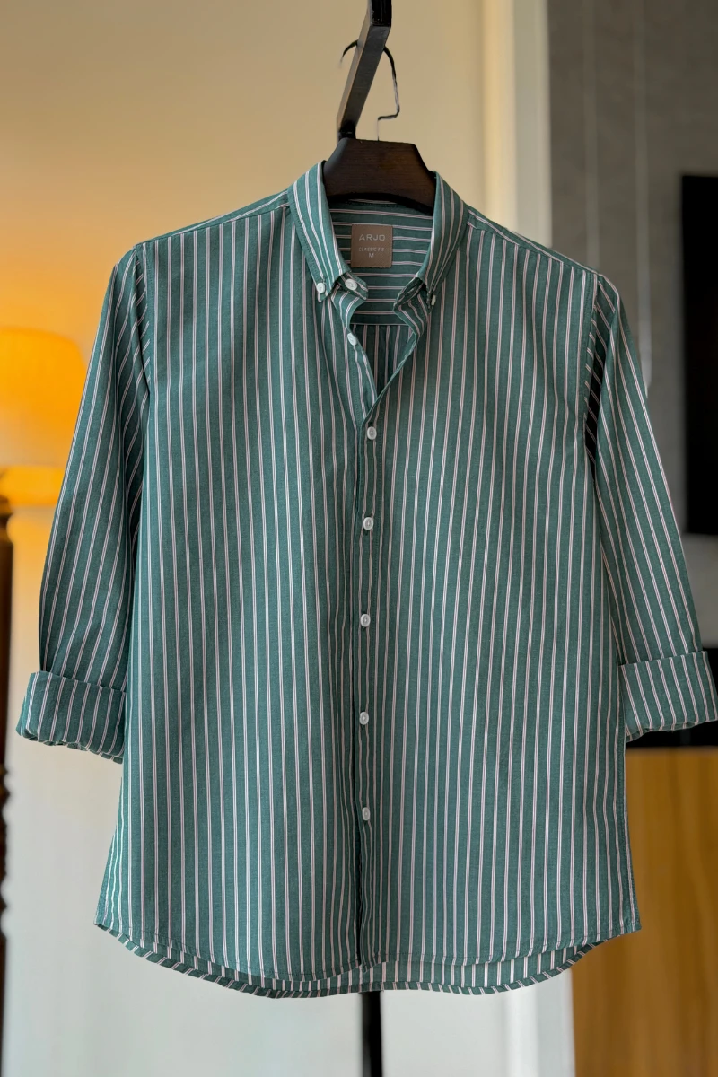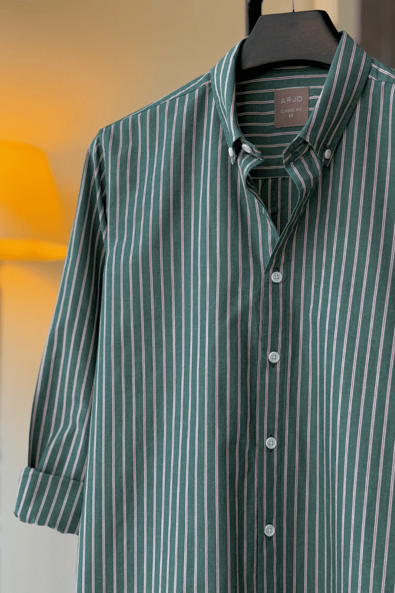 The Dark Green With Red And White Pinstripes Shirt from Arjo is the perfect choice for effortless summer style. Crafted for comfort and breathability, this lightweight shirt keeps you cool during warmer days. With its relaxed fit and timeless stripes, it’s ideal for both casual outings and laid-back occasions. If you're looking for premium Full-sleeve shirts for men in BD, this versatile piece is a must-have. Stay stylish and comfortable all season long with Arjo.