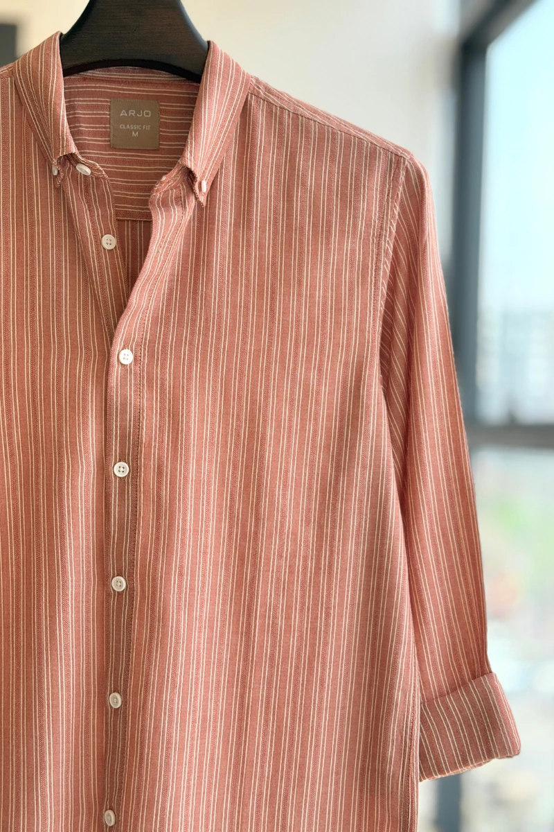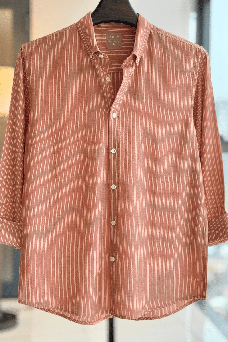 The Dark Peach with White & Textured Stipe Shirt from Arjo is the perfect choice for effortless summer style. Crafted for comfort and breathability, this lightweight shirt keeps you cool during warmer days. With its relaxed fit and timeless stripes, it’s ideal for both casual outings and laid-back occasions. If you're looking for premium Full-sleeve shirts for men in BD, this versatile piece is a must-have. Stay stylish and comfortable all season long with Arjo.