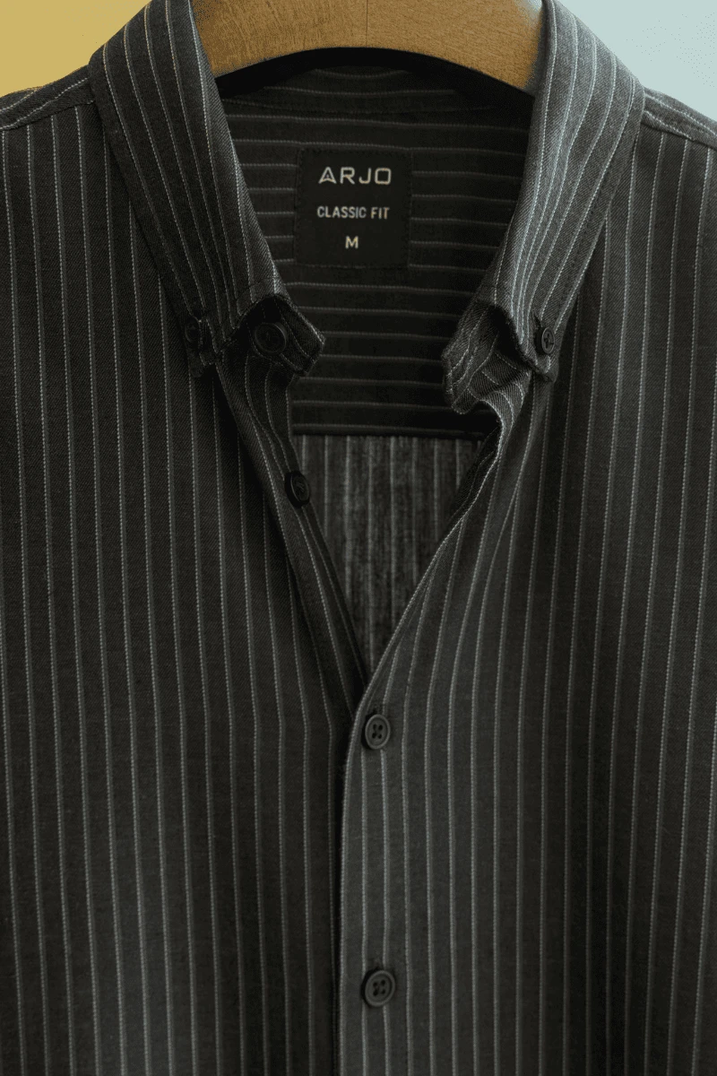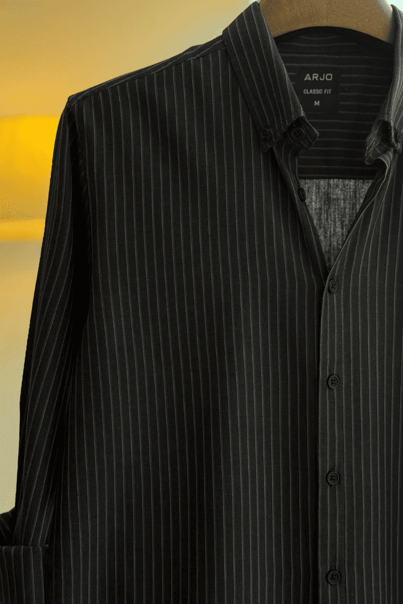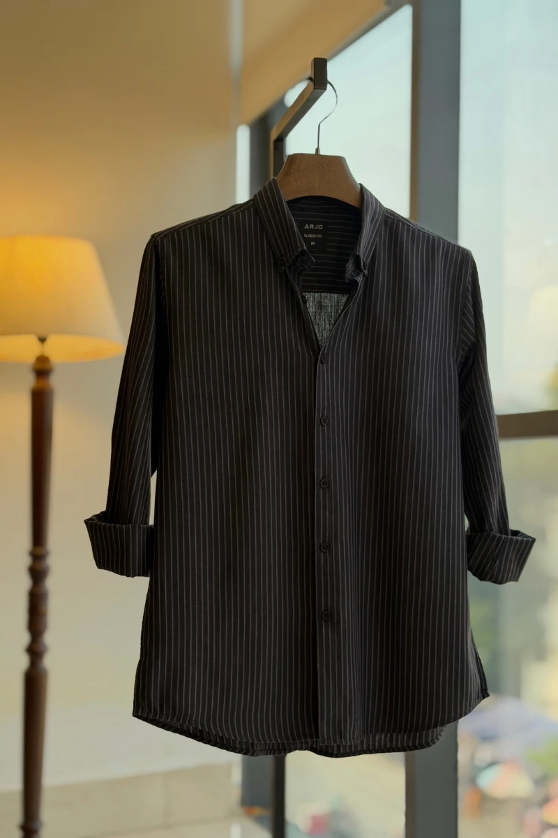 The Deep black base with fine white pinstripes Shirt from Arjo is the perfect choice for effortless summer style. Crafted for comfort and breathability, this lightweight shirt keeps you cool during warmer days. With its relaxed fit and timeless stripes, it’s ideal for both casual outings and laid-back occasions. If you're looking for premium Full-sleeve shirts for men in BD, this versatile piece is a must-have. Stay stylish and comfortable all season long with Arjo.
