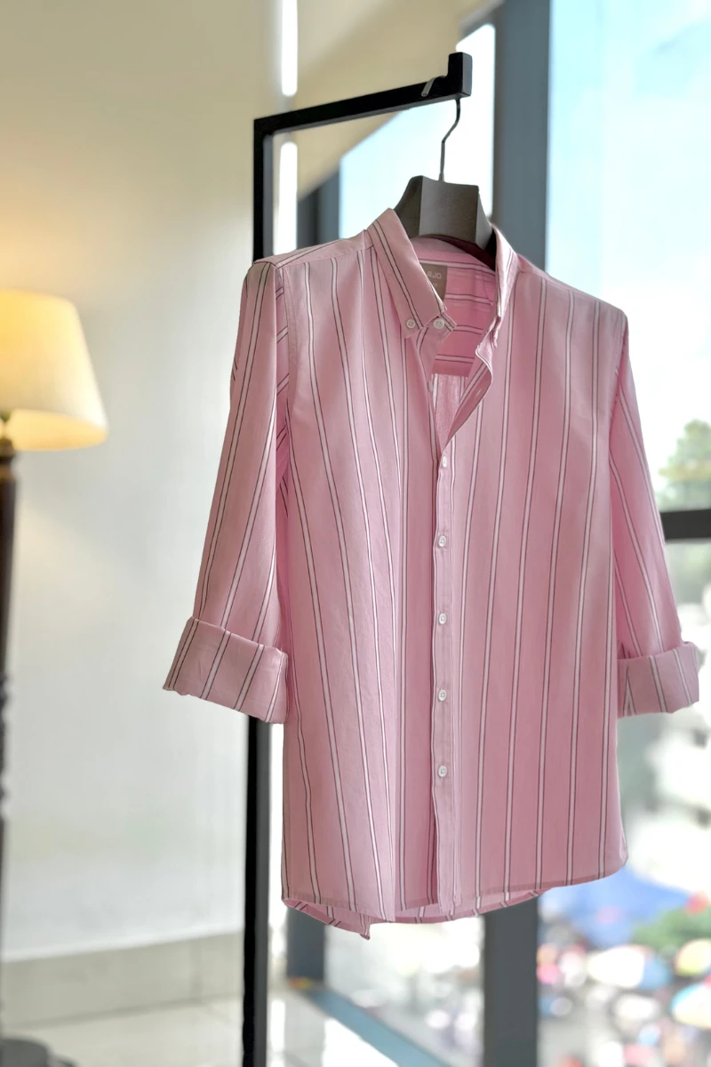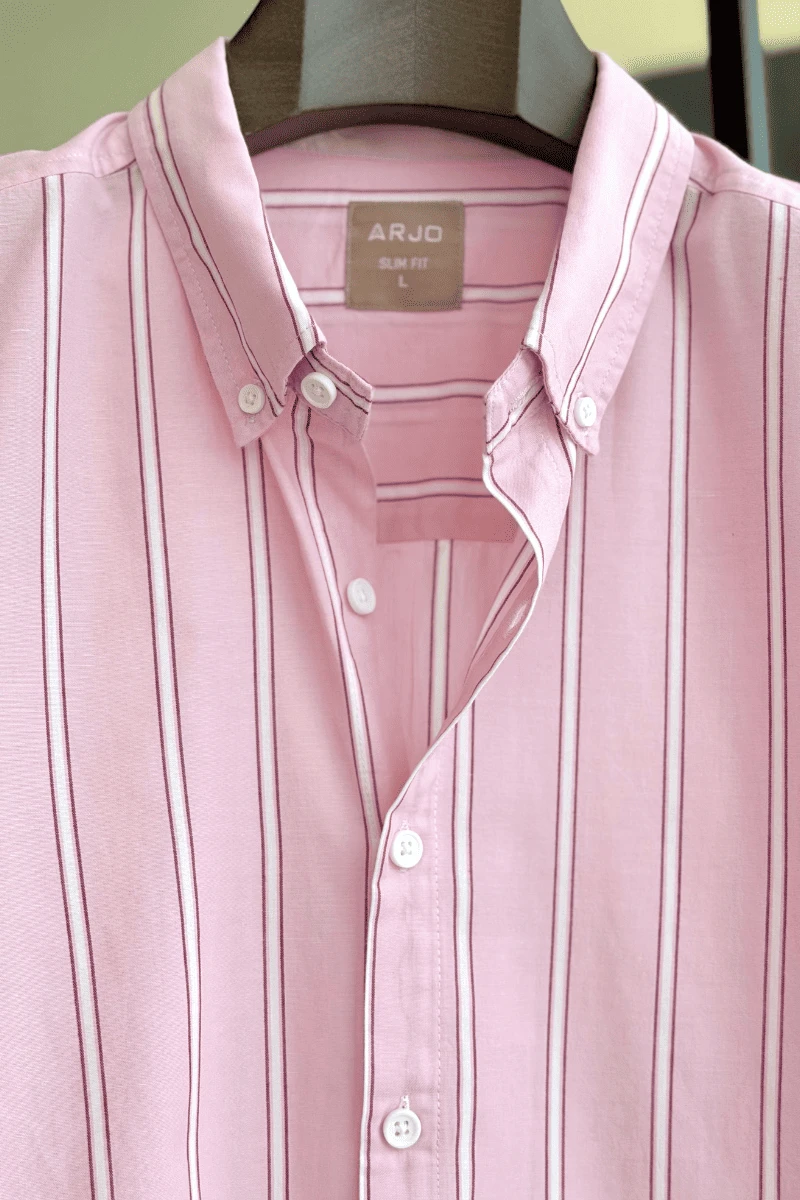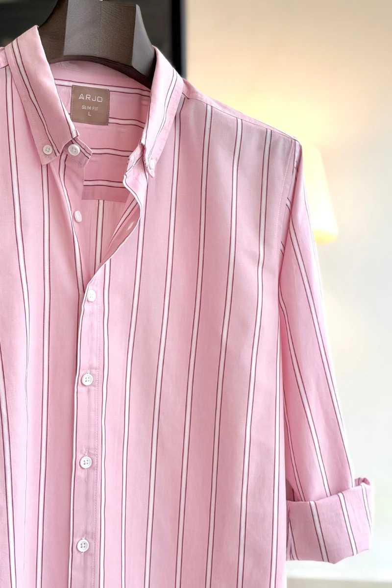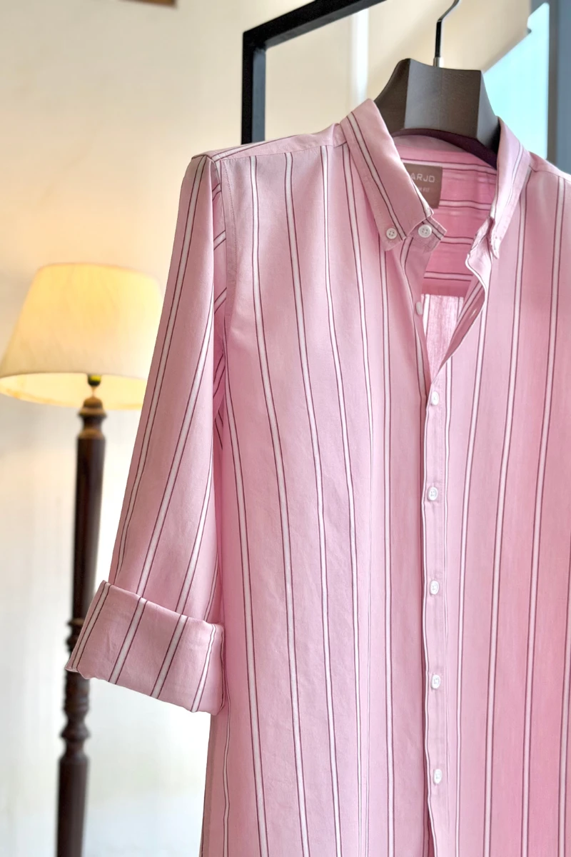 The Delicate Pink Base & Thin Maroon Stripes Shirt from Arjo is the perfect choice for effortless summer style. Crafted for comfort and breathability, this lightweight shirt keeps you cool during warmer days. With its relaxed fit and timeless stripes, it’s ideal for both casual outings and laid-back occasions. If you're looking for premium Full-sleeve shirts for men in BD, this versatile piece is a must-have. Stay stylish and comfortable all season long with Arjo.