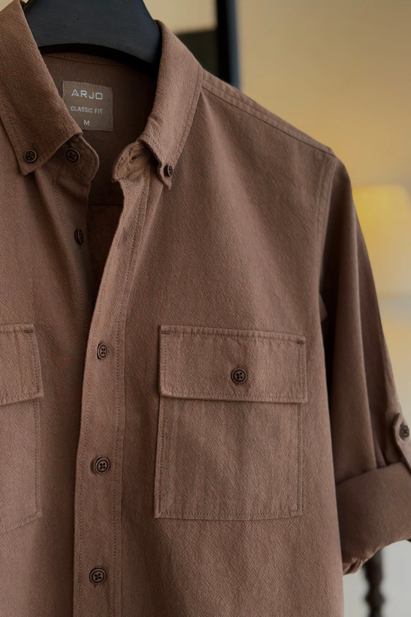 The Earth Brown Field Shirt from Arjo is the perfect choice for effortless winter style. Premium Herringbone Dobby Cotton Crafted for comfort and breathability, this lightweight shirt keeps you warm during cold days. With its relaxed fit and timeless stripes, it’s ideal for both casual outings and laid-back occasions. If you're looking for premium Full-sleeve shirts for men in BD, this versatile piece is a must-have. Stay stylish and comfortable all season long with Arjo.