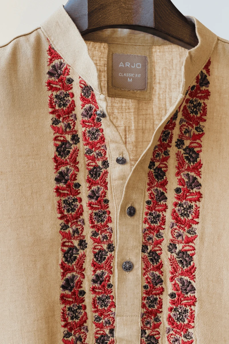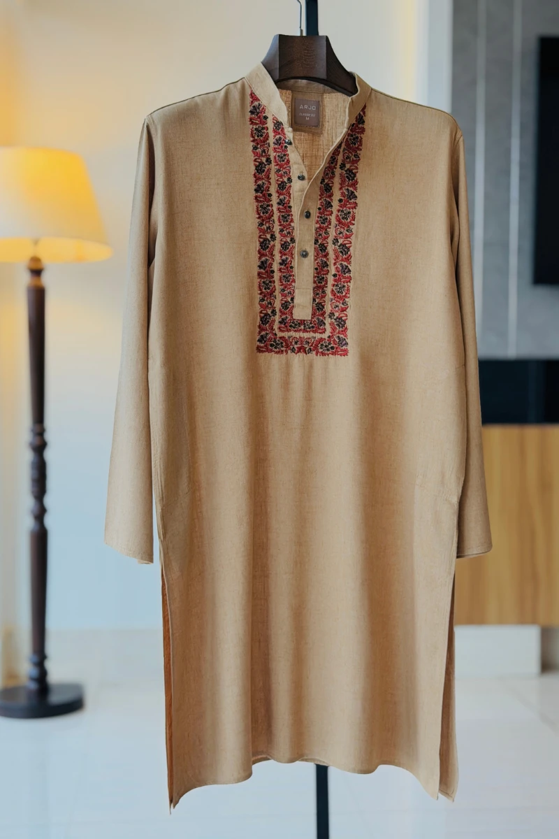 Experience timeless elegance with Arjo’s Flax with Contrast Embroidered Panjabi This Panjabi offers a breathable, soft feel, ensuring effortless wear throughout the day. Designed with a tailored fit, it seamlessly blends tradition with modern sophistication, making it perfect for any occasion, be it casual gatherings or festive celebrations. If you're looking for high-quality Punjabi for men in BD, this refined piece is a must-have in your collection. Elevate your style with Arjo today!