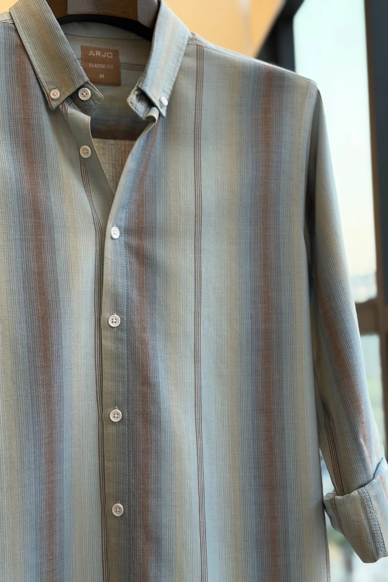 The Icy Mist Striped Shirt from Arjo is the perfect choice for effortless summer style. Crafted for comfort and breathability, this lightweight shirt keeps you cool during warmer days. With its relaxed fit and timeless stripes, it’s ideal for both casual outings and laid-back occasions. If you're looking for premium Full-sleeve shirts for men in BD, this versatile piece is a must-have. Stay stylish and comfortable all season long with Arjo.