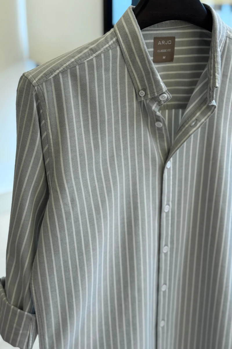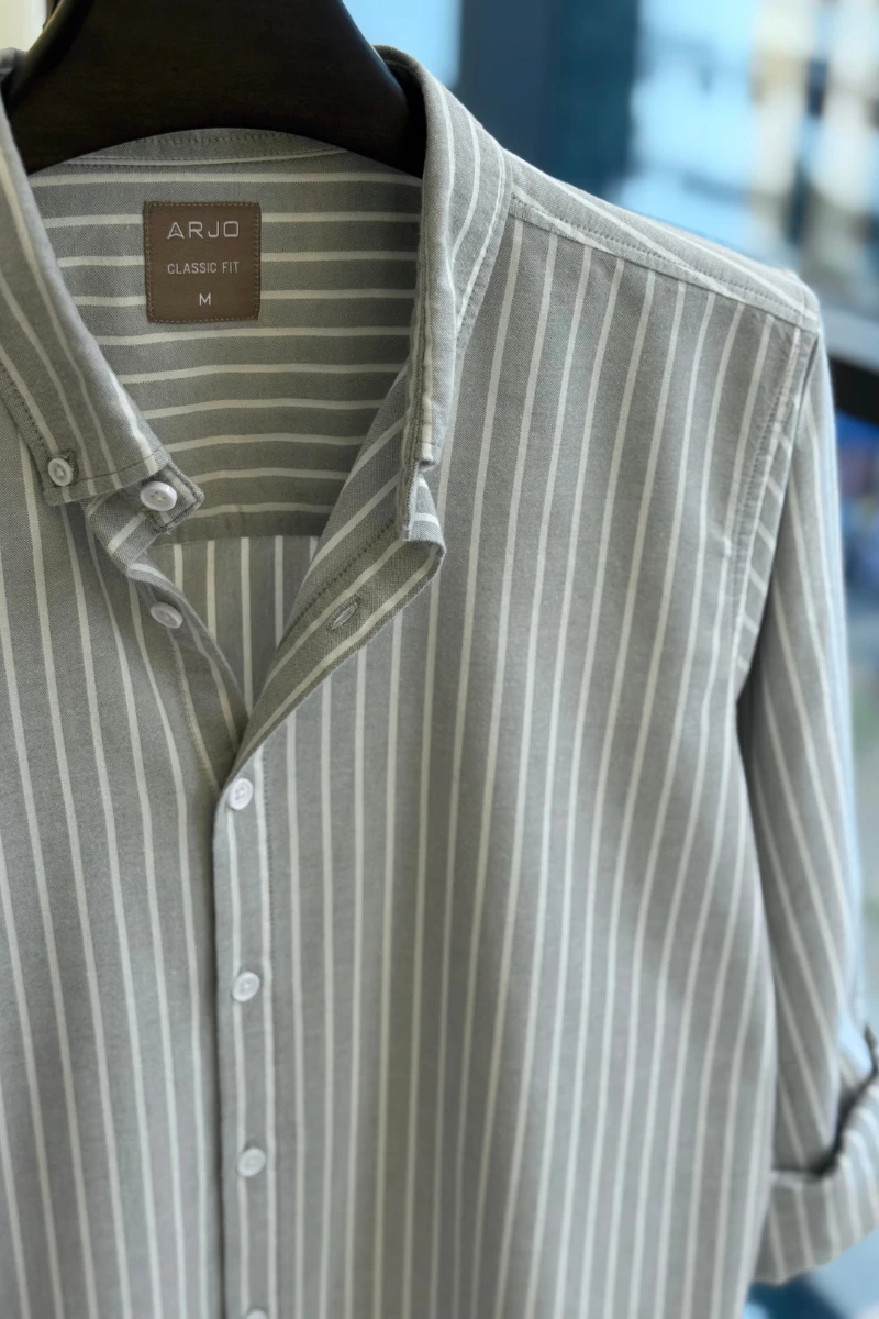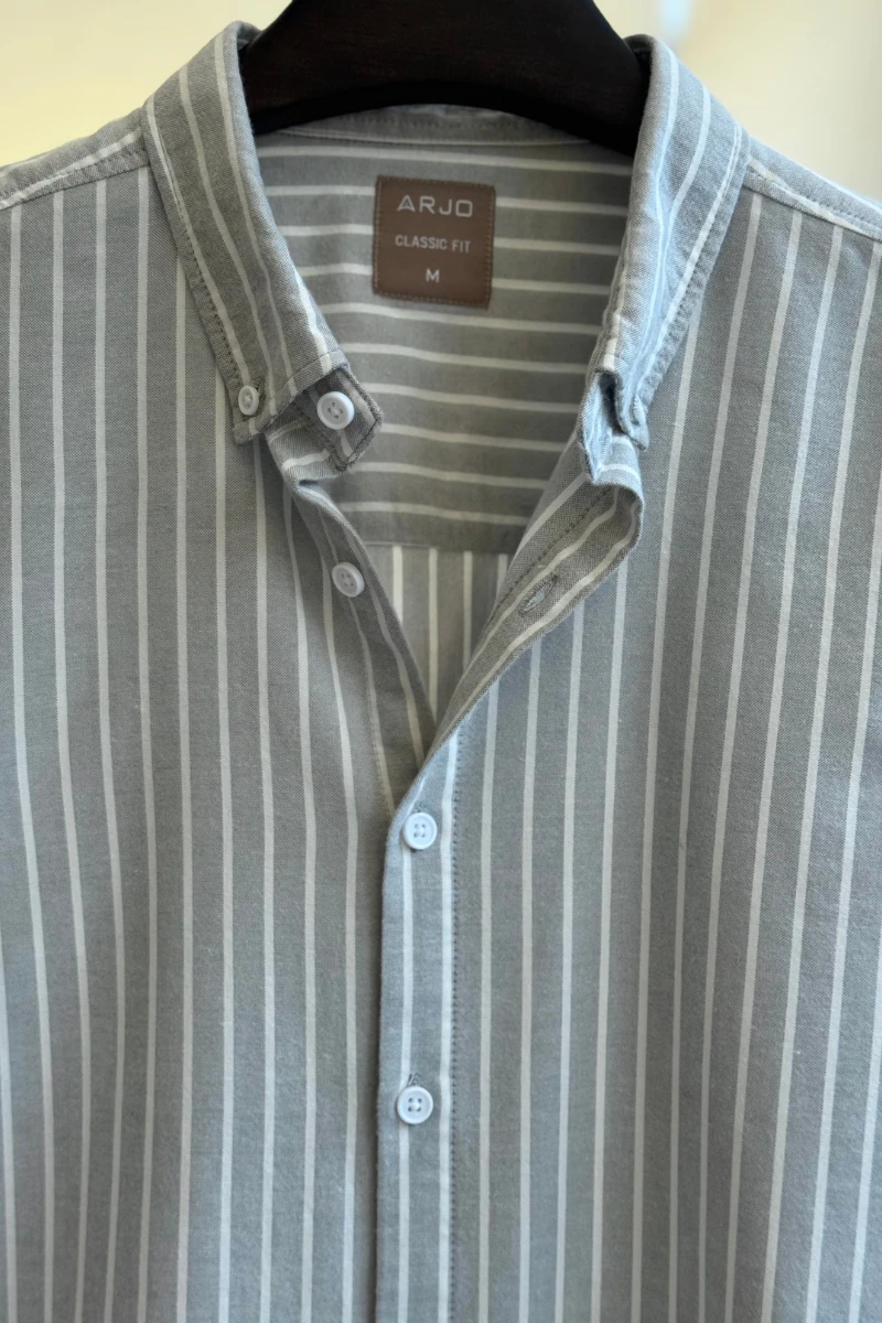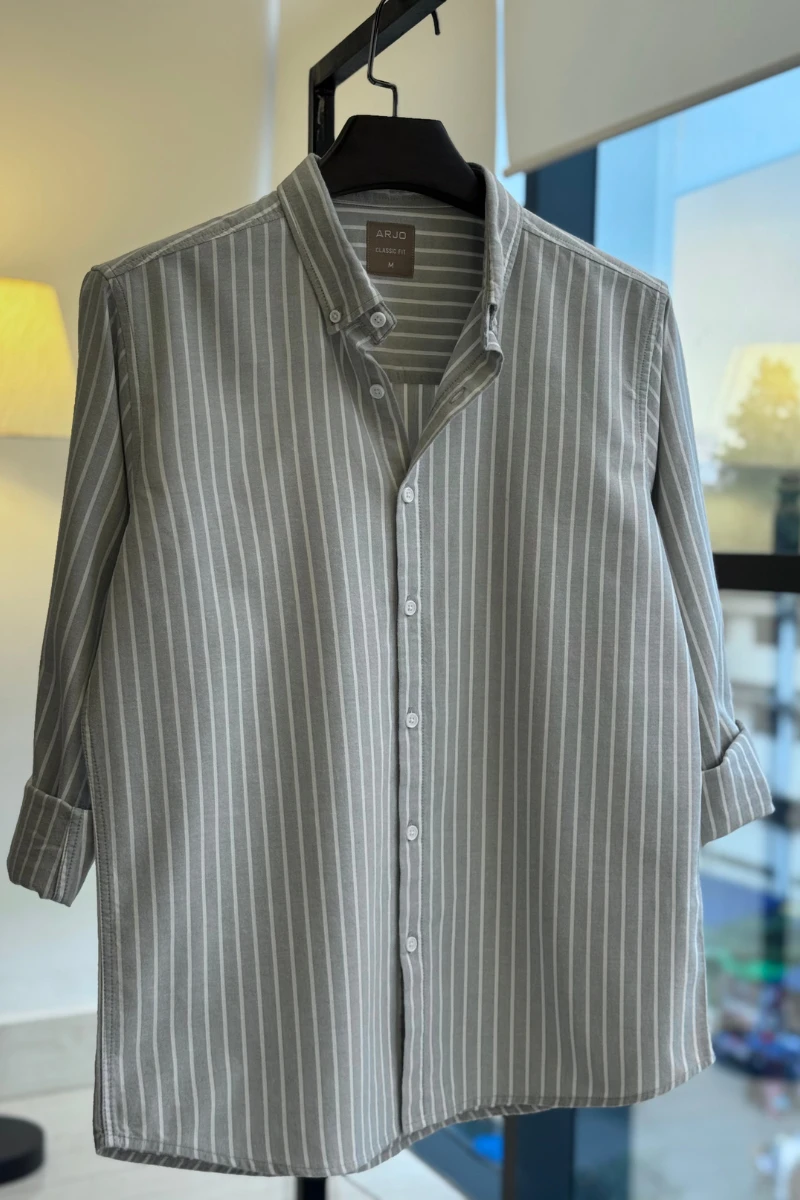 The Light Grey & White Vertical Stripe Shirt from Arjo is the perfect choice for effortless summer style. Crafted for comfort and breathability, this lightweight shirt keeps you cool during warmer days. With its relaxed fit and timeless stripes, it’s ideal for both casual outings and laid-back occasions. If you're looking for premium Full-sleeve shirts for men in BD, this versatile piece is a must-have. Stay stylish and comfortable all season long with Arjo.