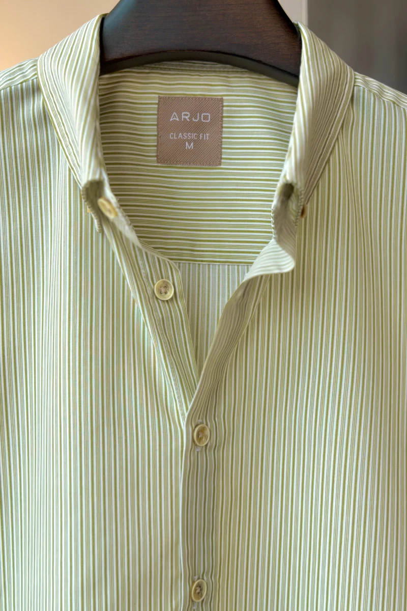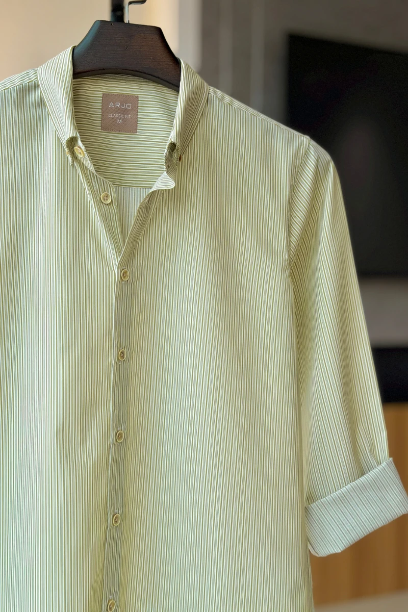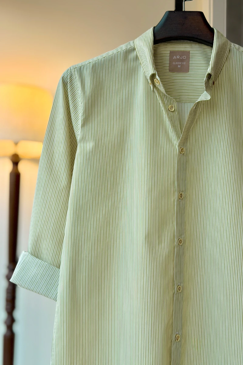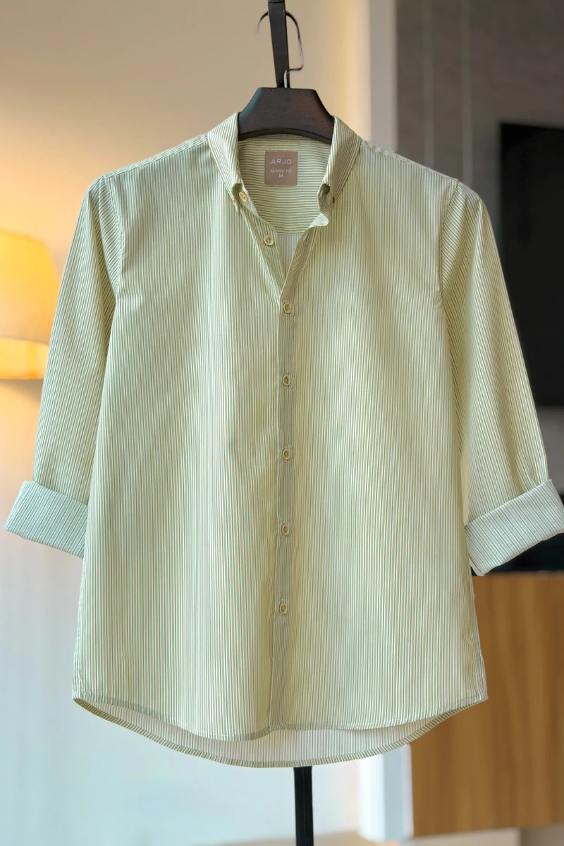 The Light Olive Green With White Pinstripes Shirt from Arjo is the perfect choice for effortless summer style. Crafted for comfort and breathability, this lightweight shirt keeps you cool during warmer days. With its relaxed fit and timeless stripes, it’s ideal for both casual outings and laid-back occasions. If you're looking for premium Full-sleeve shirts for men in BD, this versatile piece is a must-have. Stay stylish and comfortable all season long with Arjo.