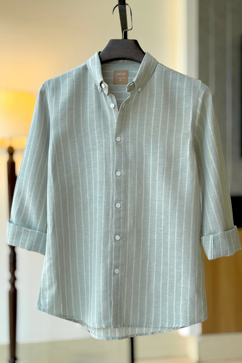 The Light Sage Green With White Stripes Shirt from Arjo is the perfect choice for effortless summer style. Crafted for comfort and breathability, this lightweight shirt keeps you cool during warmer days. With its relaxed fit and timeless stripes, it’s ideal for both casual outings and laid-back occasions. If you're looking for premium Full-sleeve shirts for men in BD, this versatile piece is a must-have. Stay stylish and comfortable all season long with Arjo.