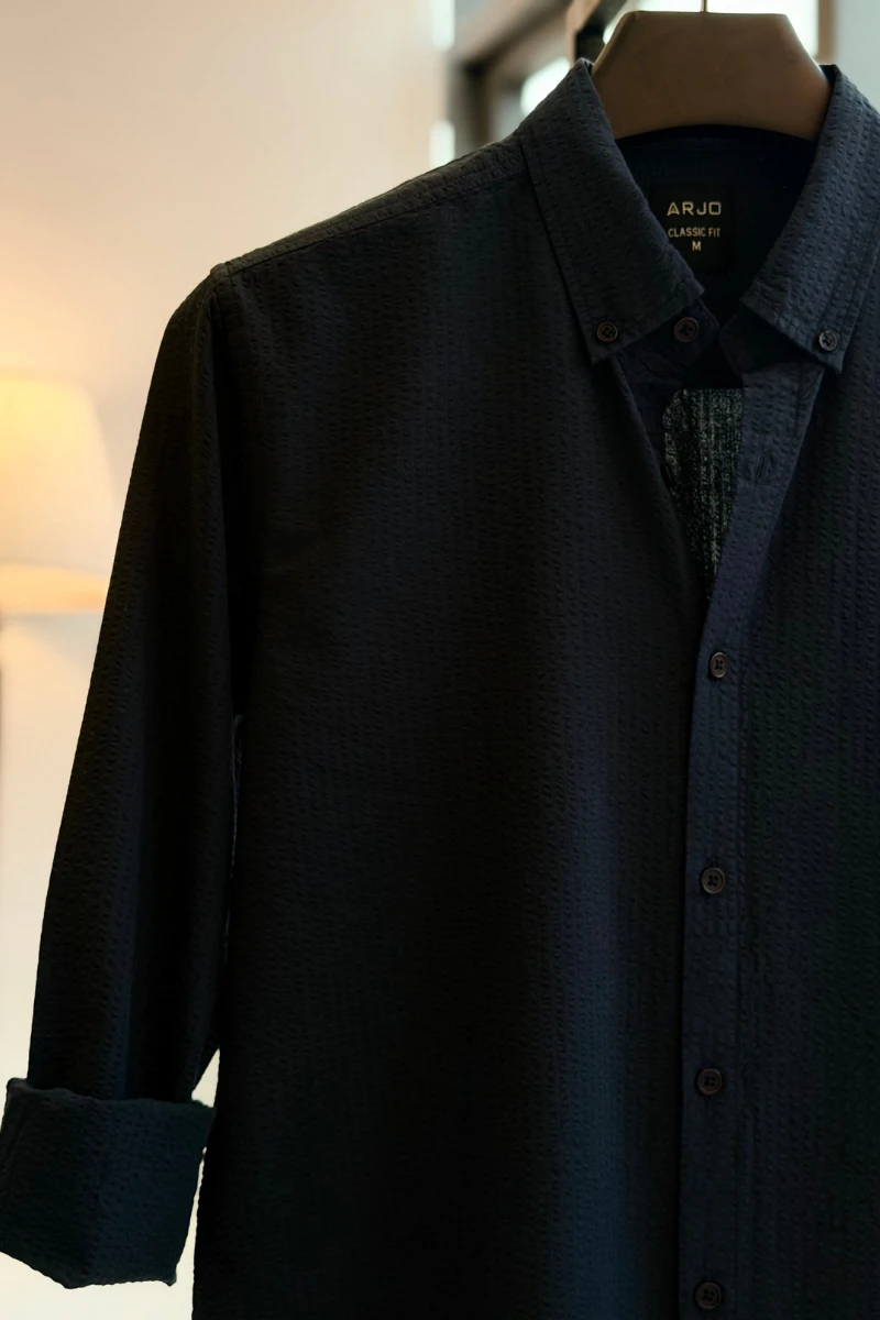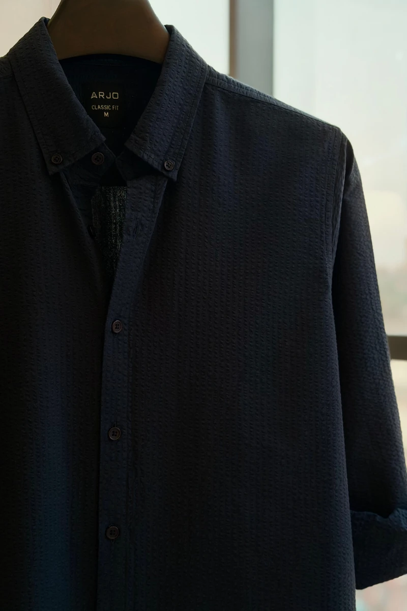The Matte Navy Blue Texture Shirt from Arjo is the perfect choice for effortless summer style. Crafted for comfort and breathability, this lightweight shirt keeps you cool during warmer days. With its relaxed fit and timeless stripes, it’s ideal for both casual outings and laid-back occasions. If you're looking for premium Full-sleeve shirts for men in BD, this versatile piece is a must-have. Stay stylish and comfortable all season long with Arjo.