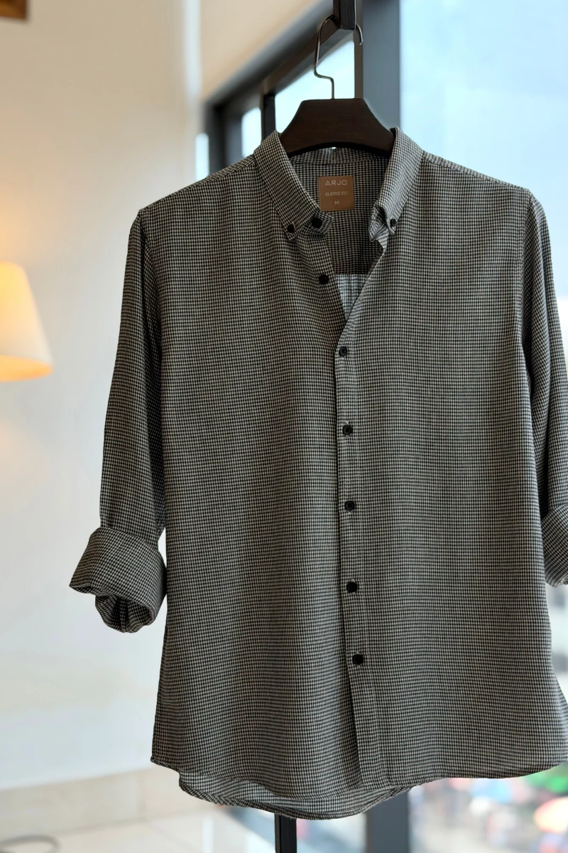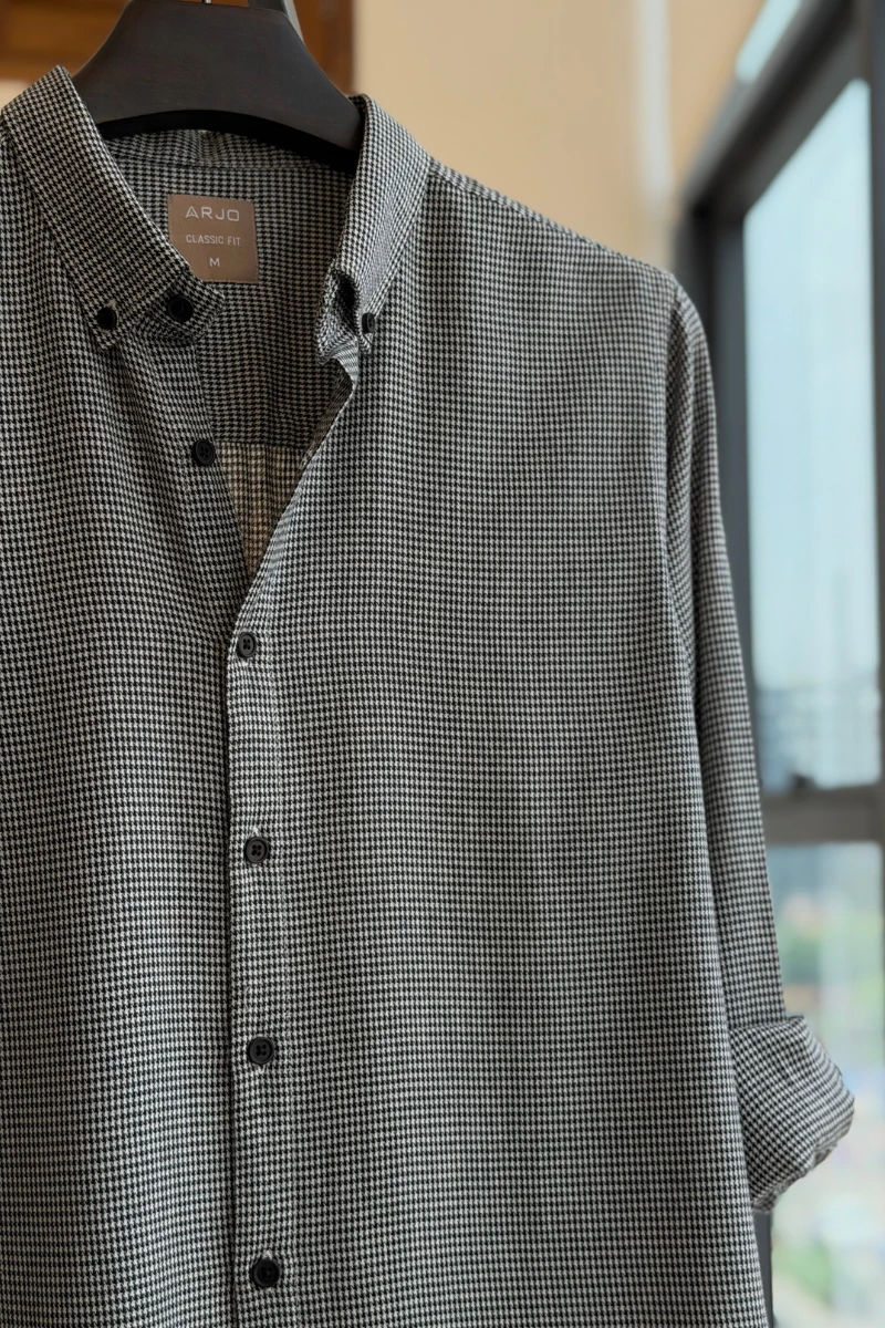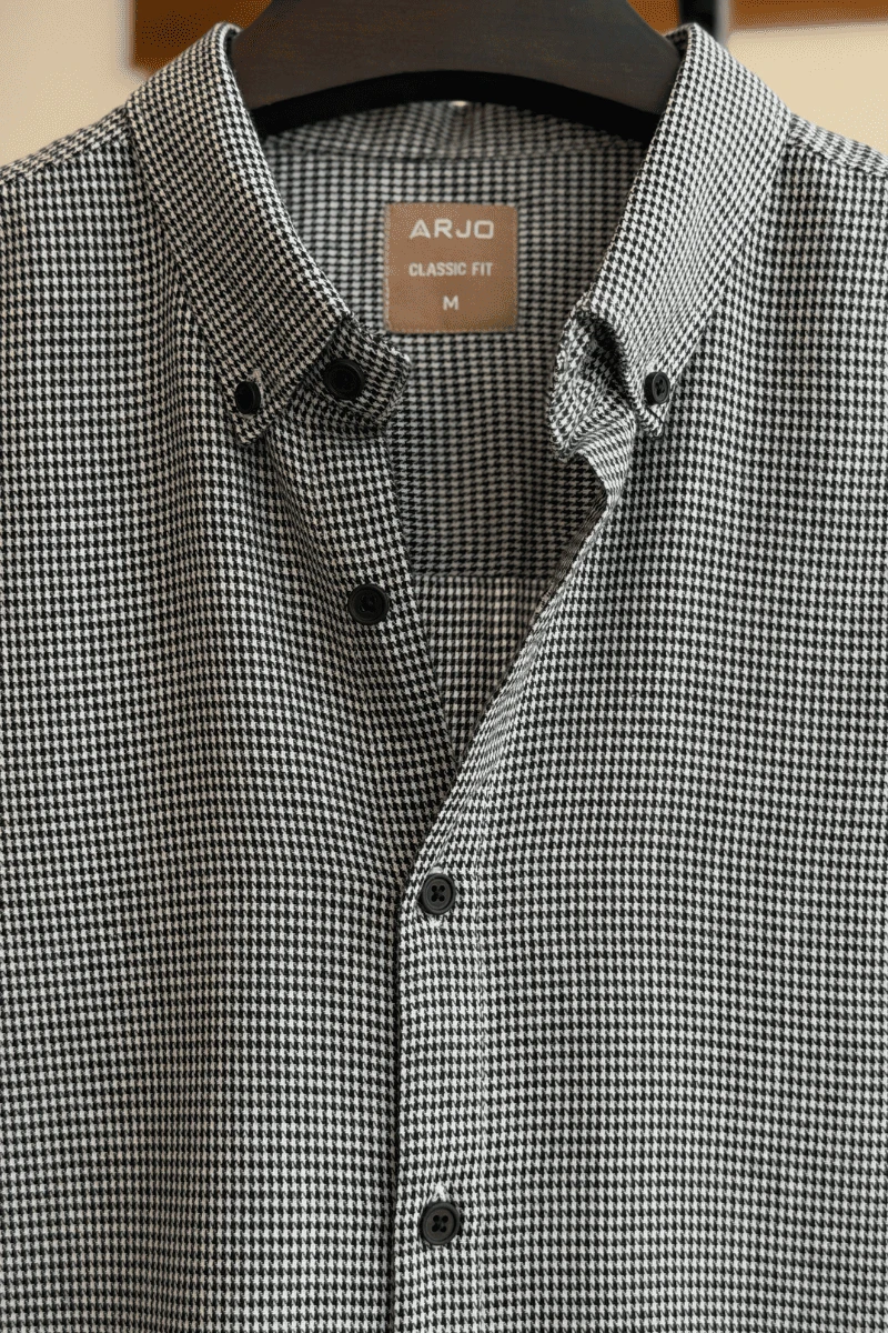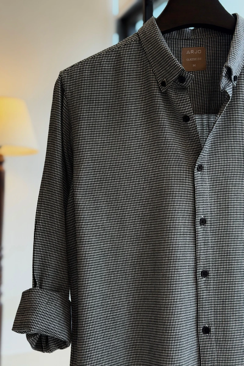 The Micro Black-and-white houndstooth check Shirt from Arjo is the perfect choice for effortless summer style. Crafted for comfort and breathability, this lightweight shirt keeps you cool during warmer days. With its relaxed fit and timeless stripes, it’s ideal for both casual outings and laid-back occasions. If you're looking for premium Full-sleeve shirts for men in BD, this versatile piece is a must-have. Stay stylish and comfortable all season long with Arjo.