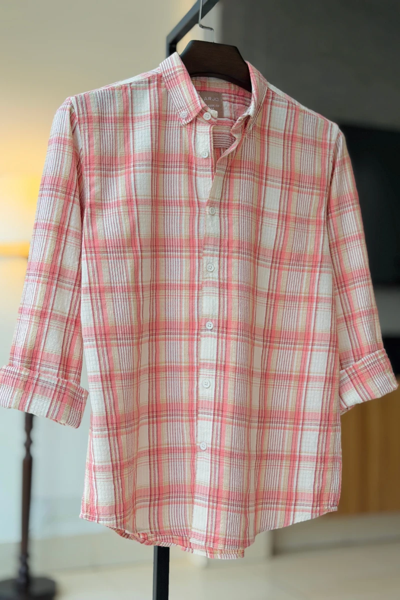 The Multi Tone Pastel Plaid Shirt from Arjo is the perfect choice for effortless summer style. Crafted for comfort and breathability, this lightweight shirt keeps you cool during warmer days. With its relaxed fit and timeless stripes, it’s ideal for both casual outings and laid-back occasions. If you're looking for premium Full-sleeve shirts for men in BD, this versatile piece is a must-have. Stay stylish and comfortable all season long with Arjo.