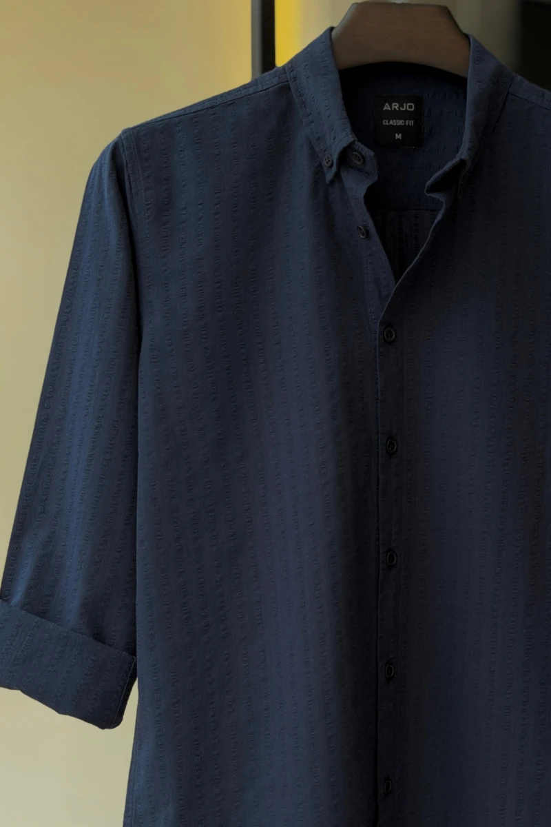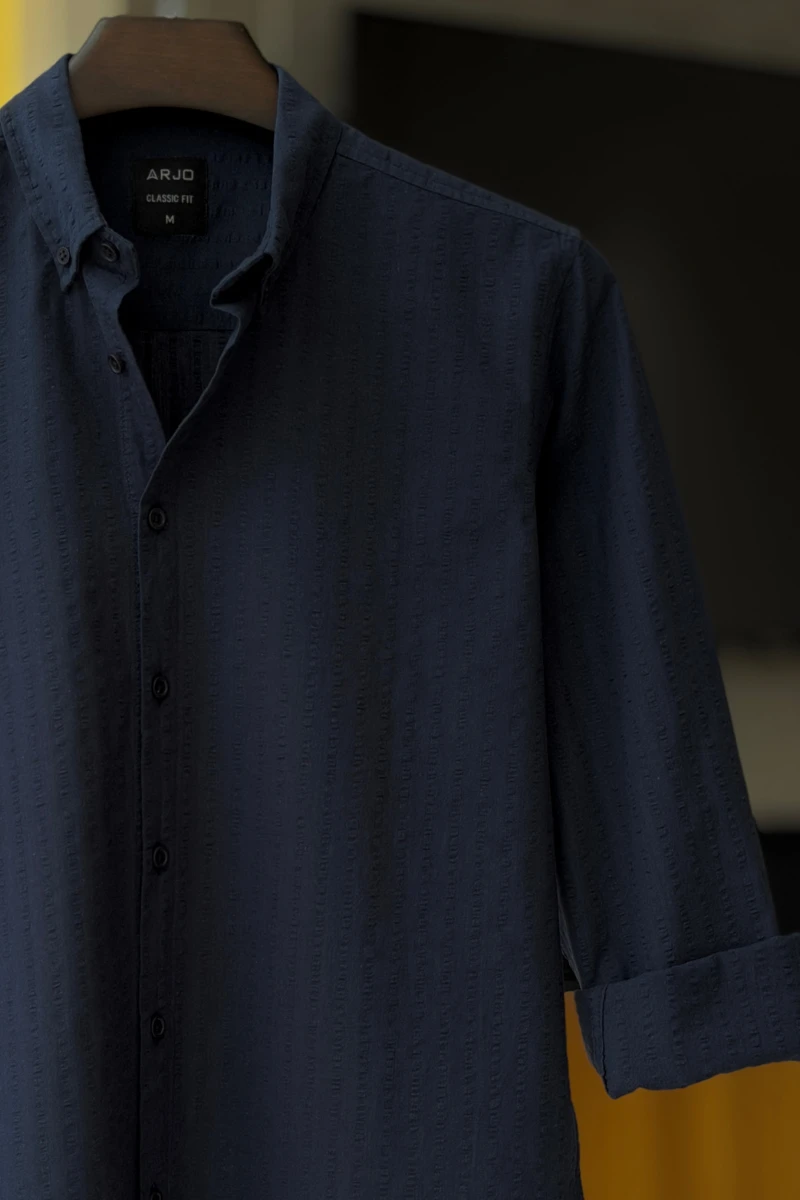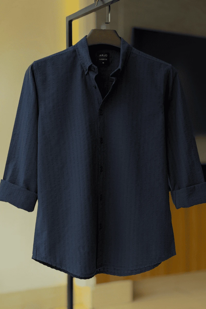 The Navy Blue Seersucker Shirt from Arjo is the perfect choice for effortless summer style. Crafted for comfort and breathability, this lightweight shirt keeps you cool during warmer days. With its relaxed fit and timeless stripes, it’s ideal for both casual outings and laid-back occasions. If you're looking for premium Full-sleeve shirts for men in BD, this versatile piece is a must-have. Stay stylish and comfortable all season long with Arjo.