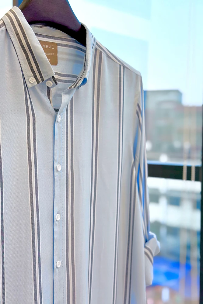 The Ocean Breeze Stripe Shirt from Arjo is the perfect choice for effortless summer style. Crafted for comfort and breathability, this lightweight shirt keeps you cool during warmer days. With its relaxed fit and timeless stripes, it’s ideal for both casual outings and laid-back occasions. If you're looking for premium Full-sleeve shirts for men in BD, this versatile piece is a must-have. Stay stylish and comfortable all season long with Arjo.