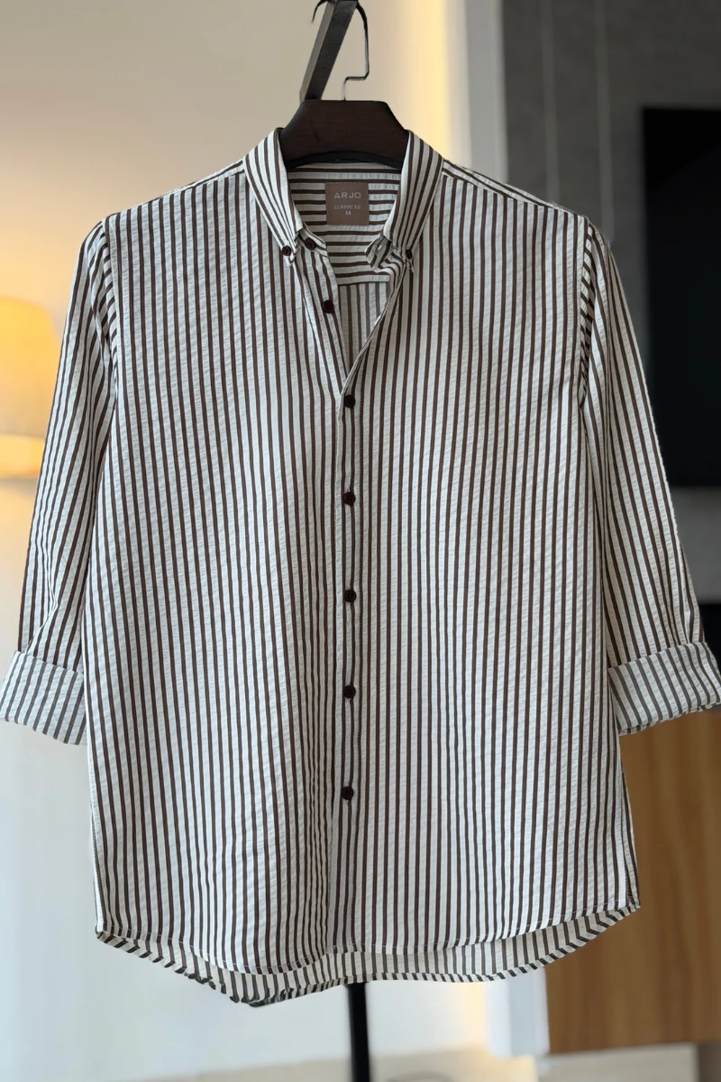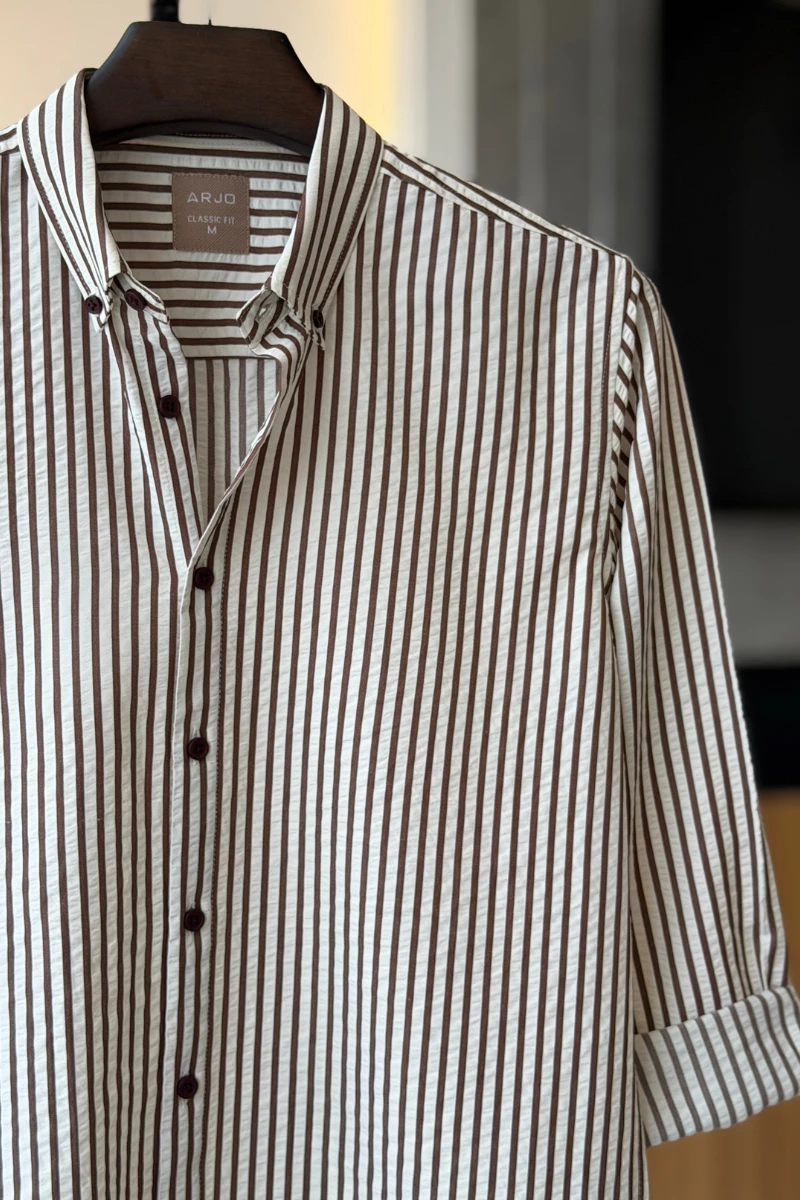 The Off-White With Chocolate Stripe Seersucker Shirt from Arjo is the perfect choice for effortless summer style. Crafted for comfort and breathability, this lightweight shirt keeps you cool during warmer days. With its relaxed fit and timeless stripes, it’s ideal for both casual outings and laid-back occasions. If you're looking for premium Full-sleeve shirts for men in BD, this versatile piece is a must-have. Stay stylish and comfortable all season long with Arjo.