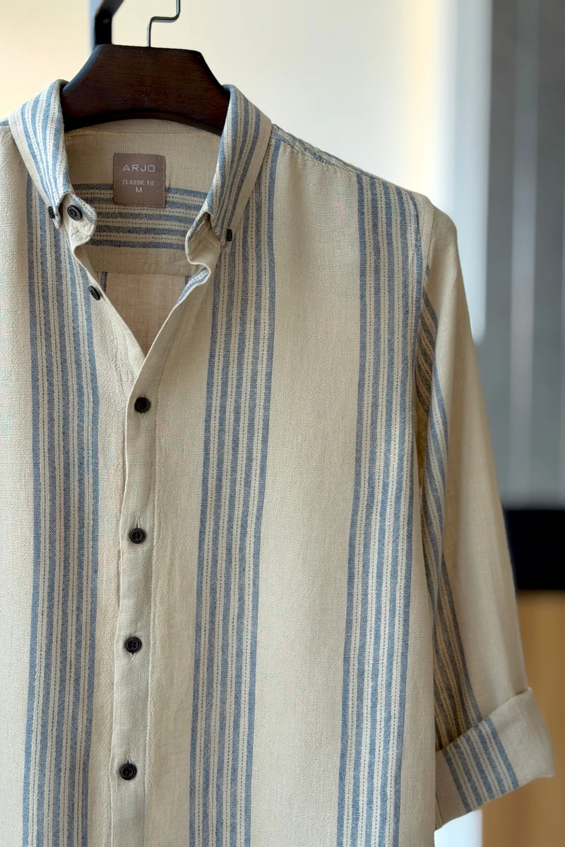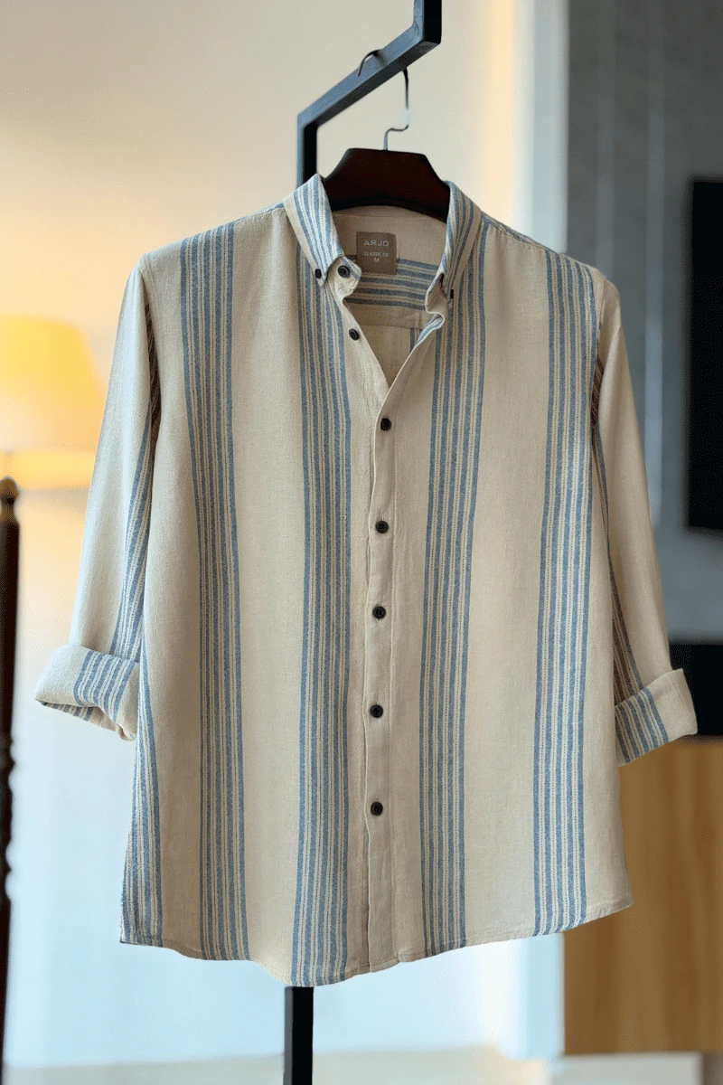 The Offwhite Textured cream Blue stripes Shirt from Arjo is the perfect choice for effortless summer style. Crafted for comfort and breathability, this lightweight shirt keeps you cool during warmer days. With its relaxed fit and timeless stripes, it’s ideal for both casual outings and laid-back occasions. If you're looking for premium Full-sleeve shirts for men in BD, this versatile piece is a must-have. Stay stylish and comfortable all season long with Arjo.