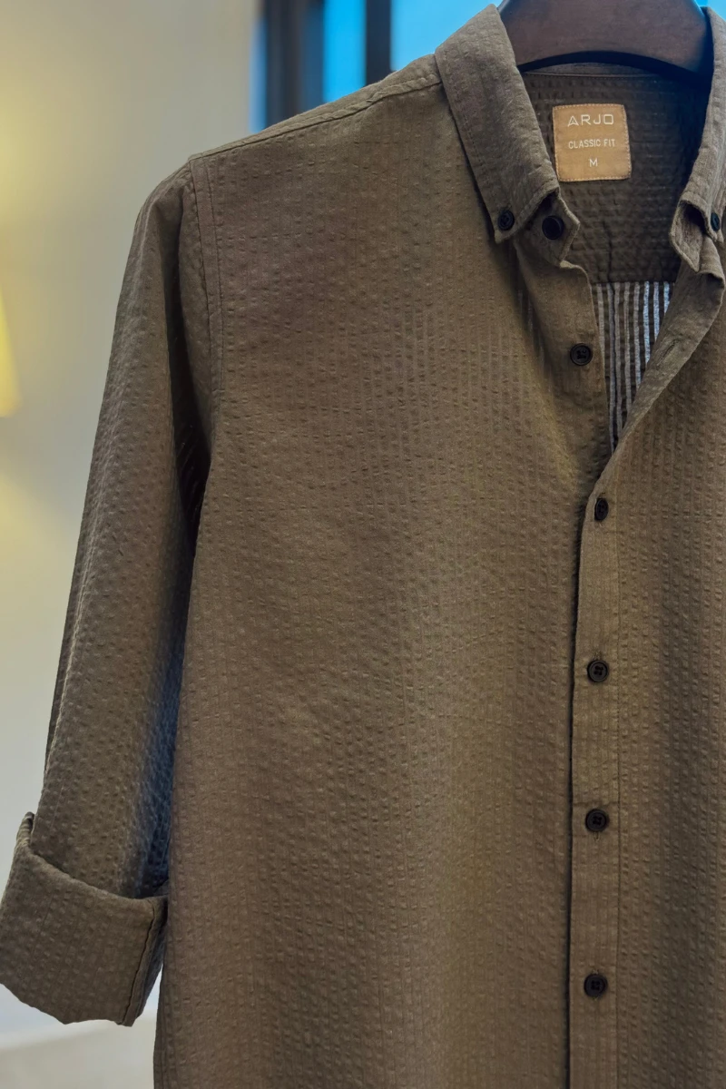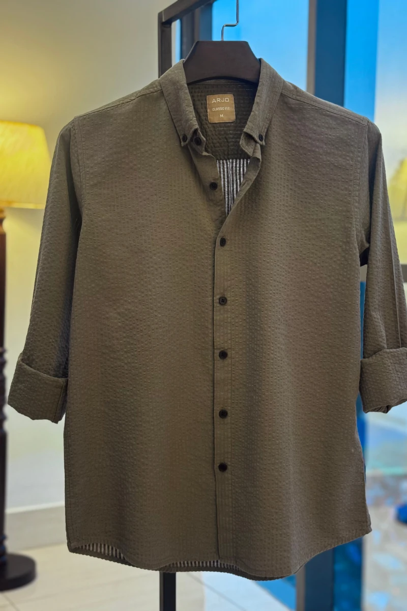 The Olive Textured Shirt from Arjo is the perfect choice for effortless summer style. Crafted for comfort and breathability, this lightweight shirt keeps you cool during warmer days. With its relaxed fit and timeless stripes, it’s ideal for both casual outings and laid-back occasions. If you're looking for premium Full-sleeve shirts for men in BD, this versatile piece is a must-have. Stay stylish and comfortable all season long with Arjo.