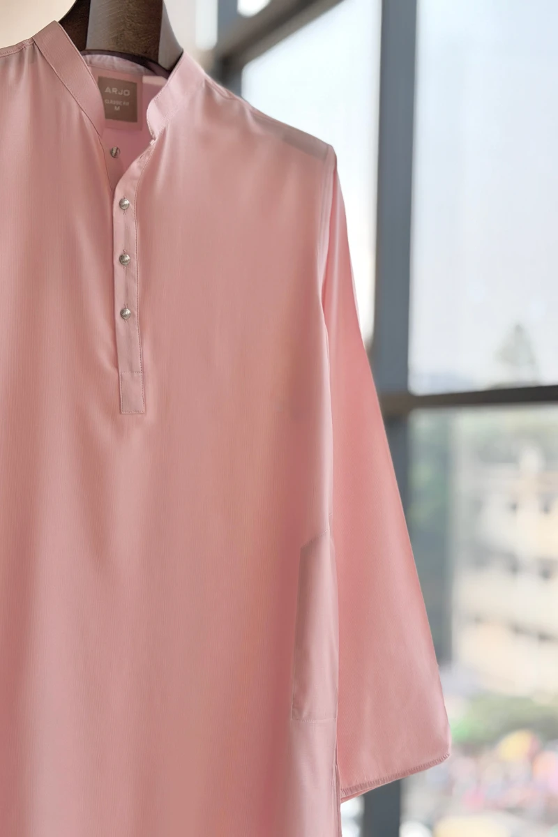 Experience timeless elegance with Arjo’s Pale Pink Classic Panjabi This Panjabi offers a breathable, soft feel, ensuring effortless wear throughout the day. Designed with a tailored fit, it seamlessly blends tradition with modern sophistication, making it perfect for any occasion, be it casual gatherings or festive celebrations. If you're looking for high-quality Punjabi for men in BD, this refined piece is a must-have in your collection. Elevate your style with Arjo today!