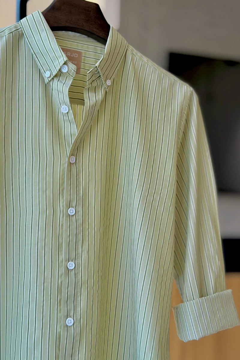 The Sage Green With White Vertical Stripes from Arjo is the perfect choice for effortless summer style. Crafted for comfort and breathability, this lightweight shirt keeps you cool during warmer days. With its relaxed fit and timeless stripes, it’s ideal for both casual outings and laid-back occasions. If you're looking for premium Full-sleeve shirts for men in BD, this versatile piece is a must-have. Stay stylish and comfortable all season long with Arjo.