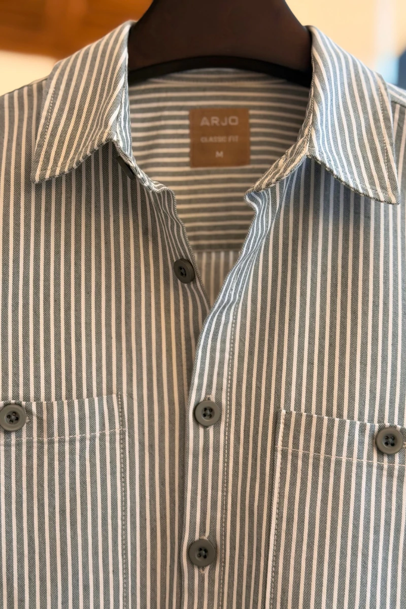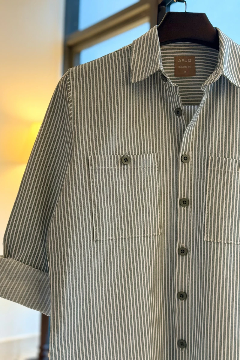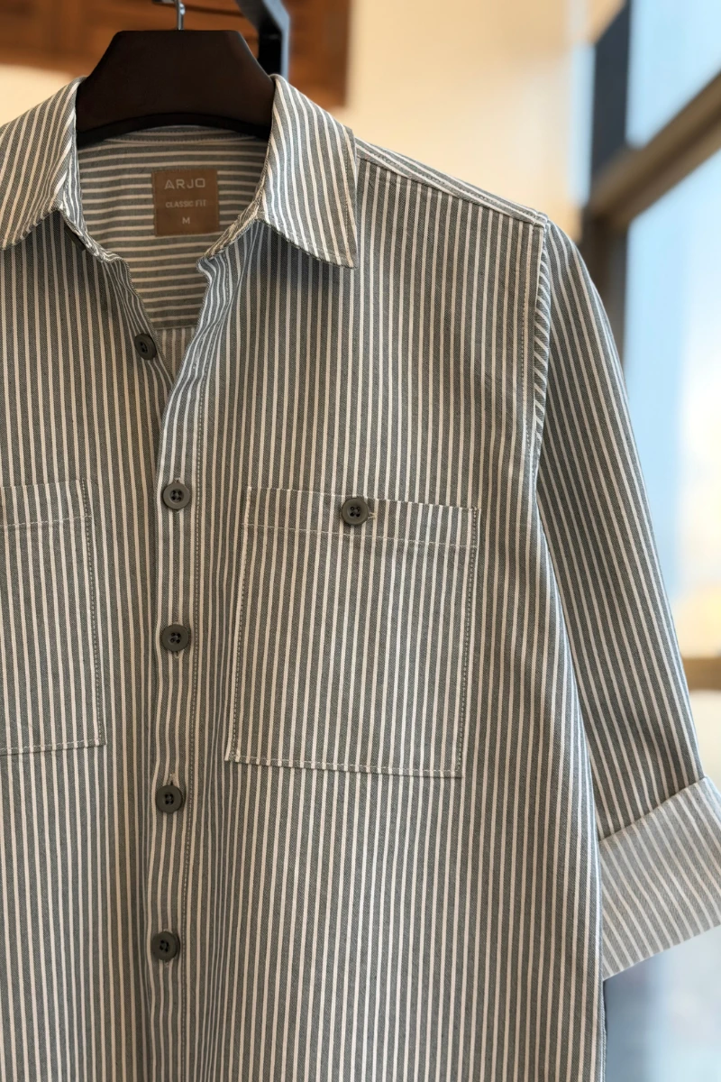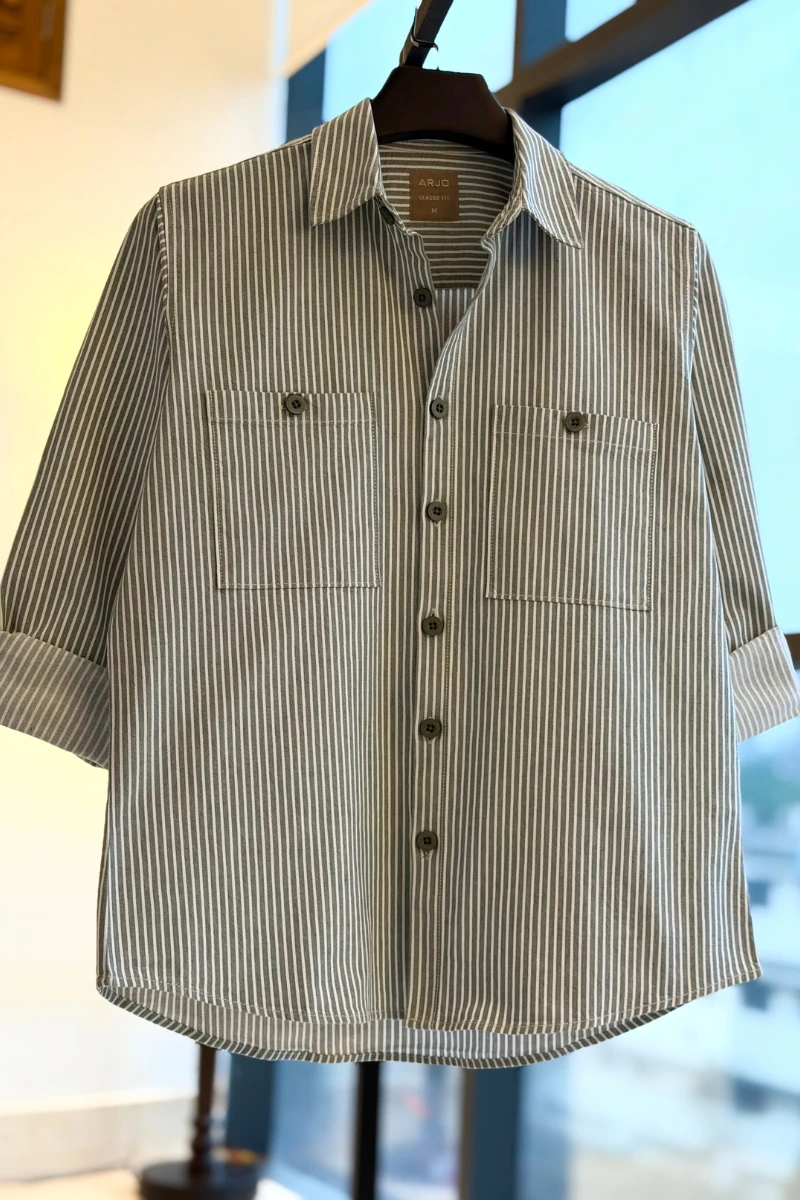The Soft Olive Grey With White Stripes Over Shirt from Arjo is the perfect choice for effortless summer style. Crafted for comfort and breathability, this lightweight shirt keeps you cool during warmer days. With its relaxed fit and timeless stripes, it’s ideal for both casual outings and laid-back occasions. If you're looking for premium Full-sleeve shirts for men in BD, this versatile piece is a must-have. Stay stylish and comfortable all season long with Arjo.