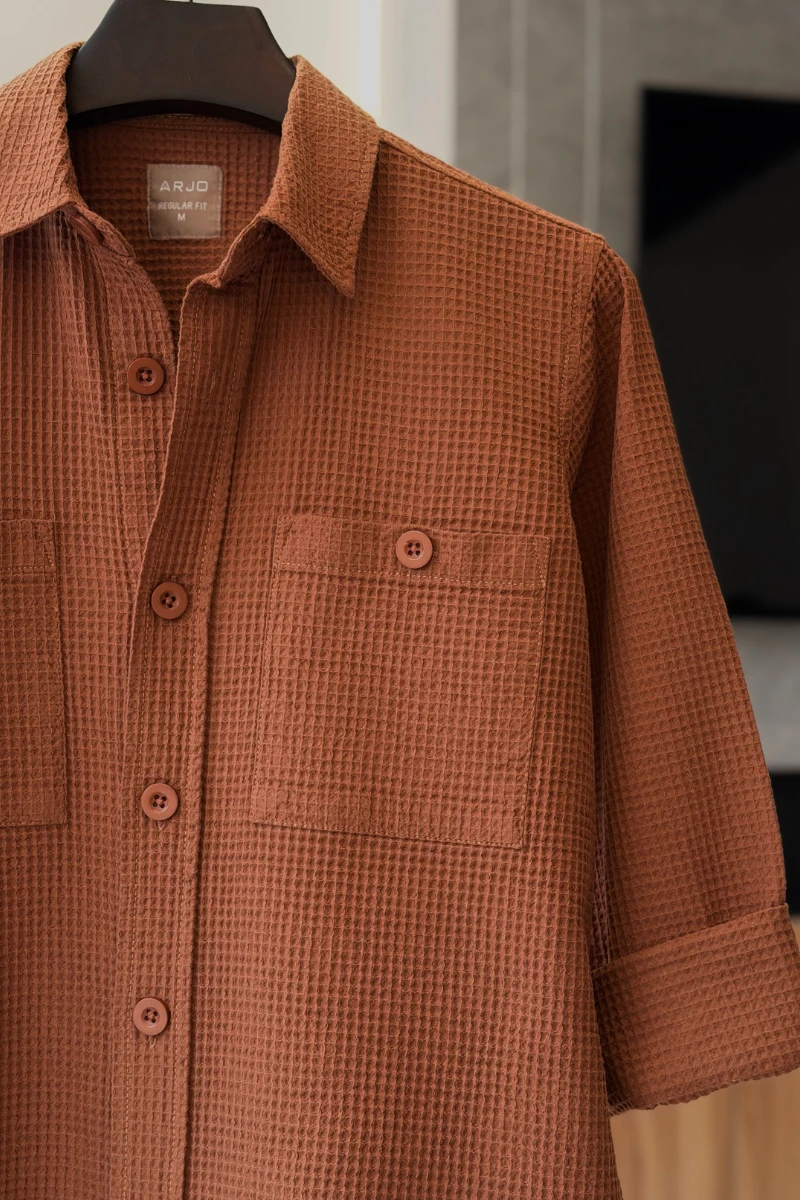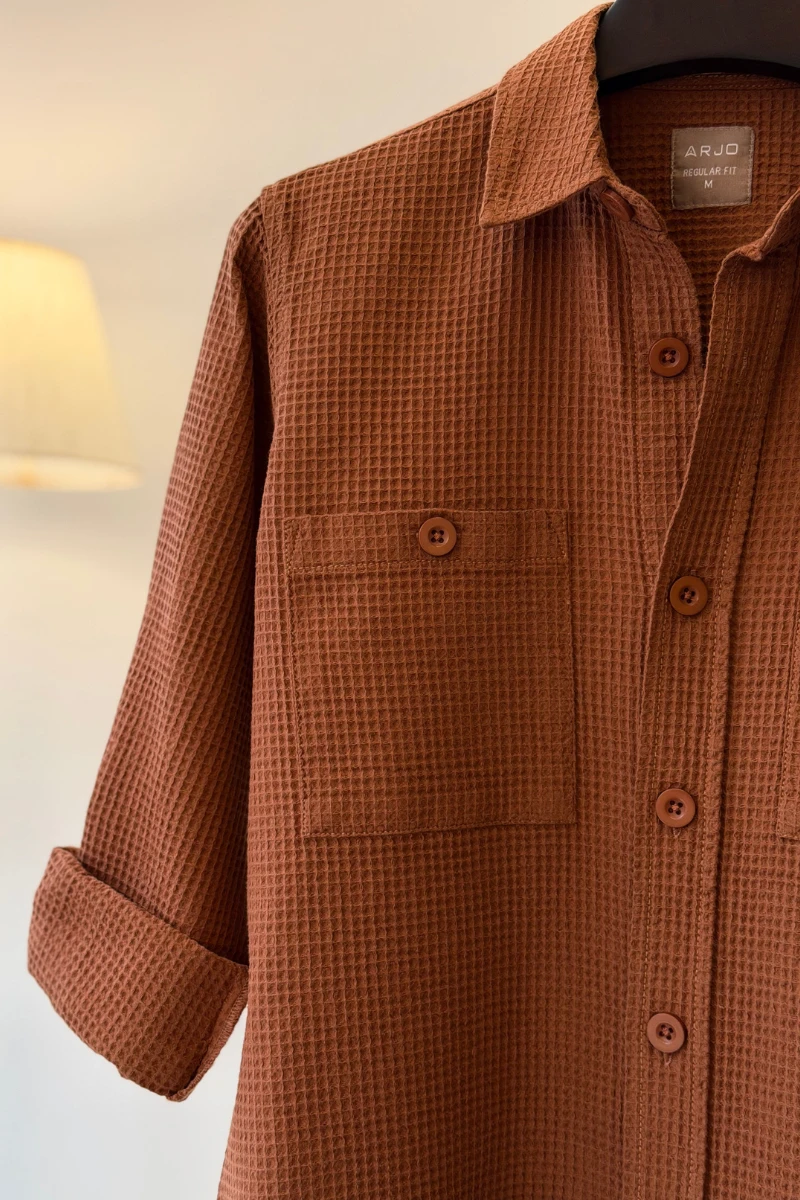 The Terracotta Double Pocket Overshirt from Arjo is the perfect choice for effortless summer style. Crafted for comfort and breathability, this lightweight shirt keeps you cool during warmer days. With its relaxed fit and timeless stripes, it’s ideal for both casual outings and laid-back occasions. If you're looking for premium Full-sleeve shirts for men in BD, this versatile piece is a must-have. Stay stylish and comfortable all season long with Arjo.