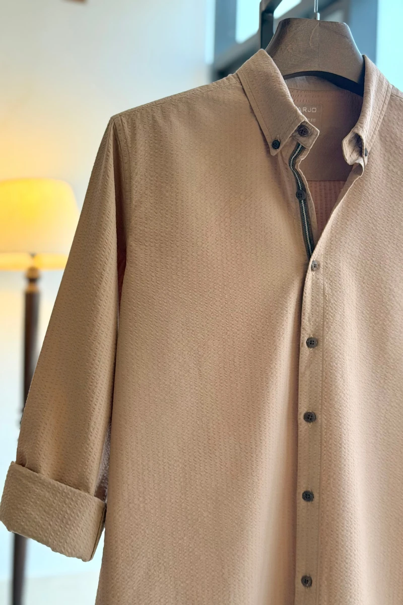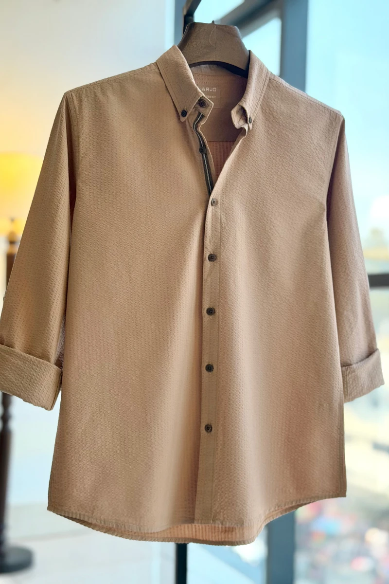 The Vintage Copper Seersucker Shirt from Arjo is the perfect choice for effortless summer style. Crafted for comfort and breathability, this lightweight shirt keeps you cool during warmer days. With its relaxed fit and timeless stripes, it’s ideal for both casual outings and laid-back occasions. If you're looking for premium Full-sleeve shirts for men in BD, this versatile piece is a must-have. Stay stylish and comfortable all season long with Arjo.