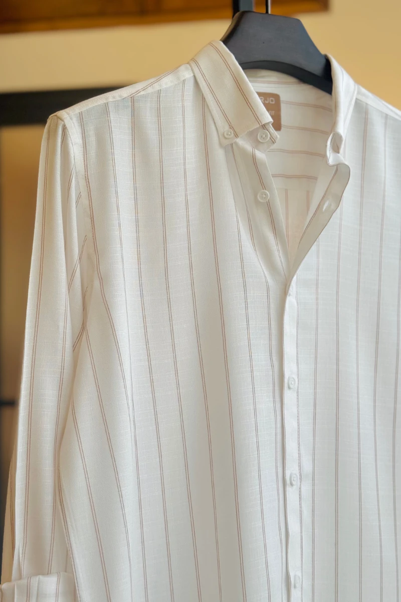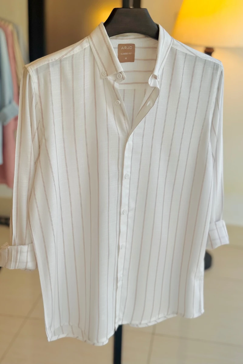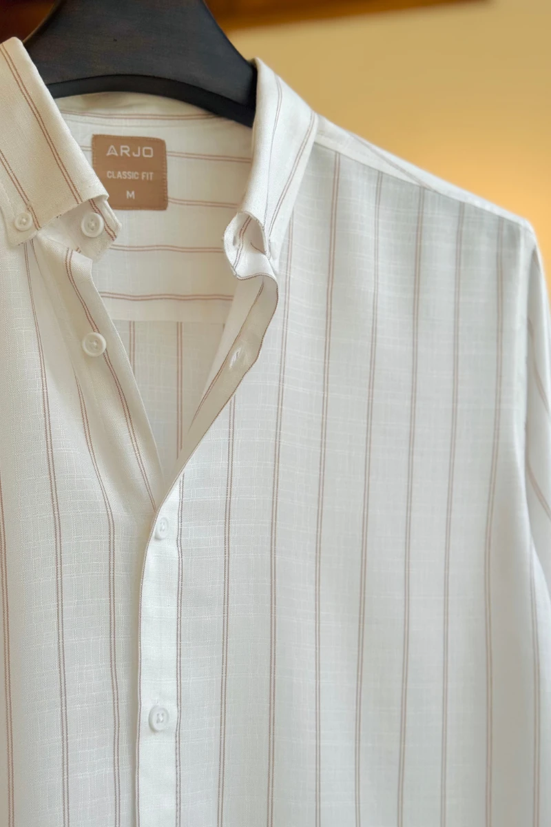 The White Shirt with Brown Pinstripes from Arjo is the perfect choice for effortless summer style. Crafted for comfort and breathability, this lightweight shirt keeps you cool during warmer days. With its relaxed fit and timeless stripes, it’s ideal for both casual outings and laid-back occasions. If you're looking for premium Full-sleeve shirts for men in BD, this versatile piece is a must-have. Stay stylish and comfortable all season long with Arjo.