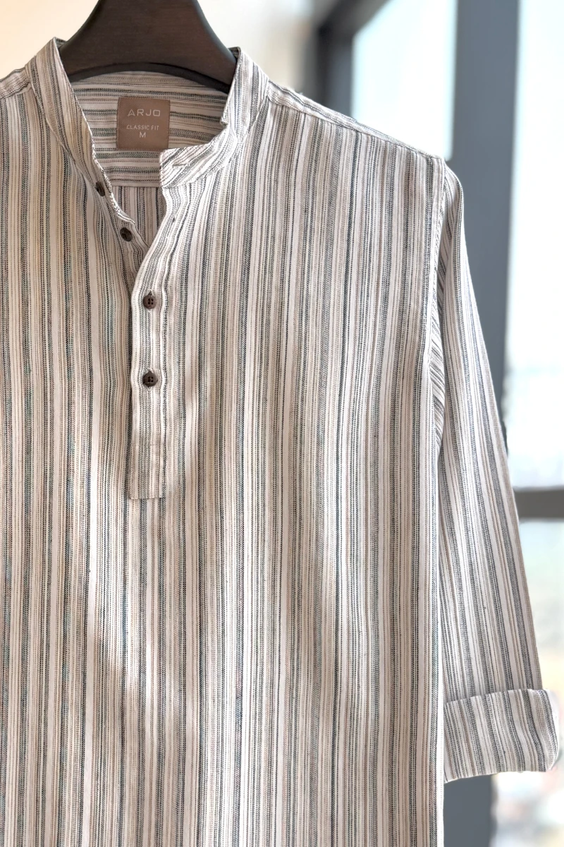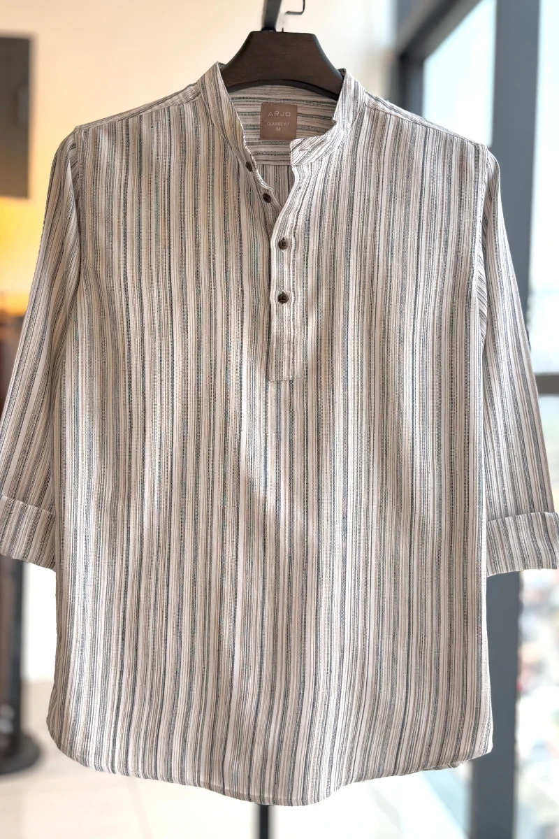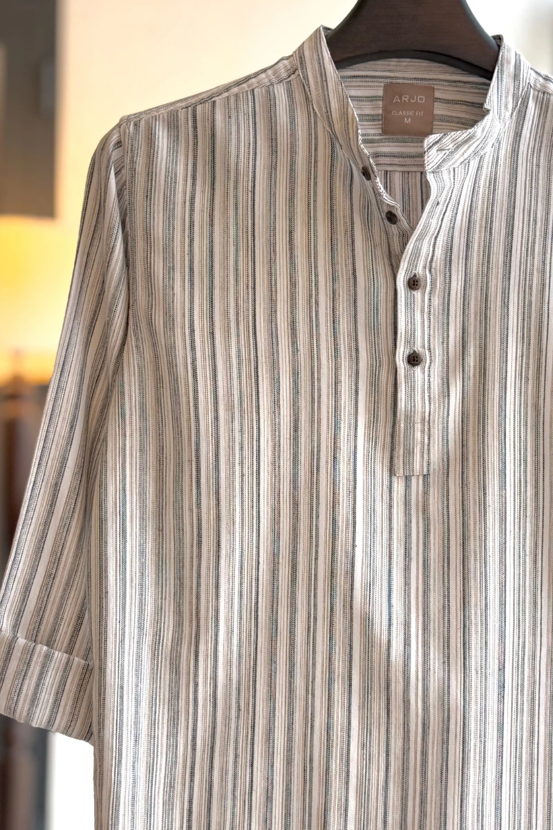 The White with Black & Golden Brown Multi Stripped Katua from Arjo is a perfect blend of style and comfort. This full-sleeve katua offers a breathable and soft feel, making it ideal for all-day wear. Designed for a sophisticated look, its classic fit suits both casual and formal occasions. If you're searching for high-quality katua for men in BD, this elegant piece is a must-have for your collection. Upgrade your style with Arjo today!
