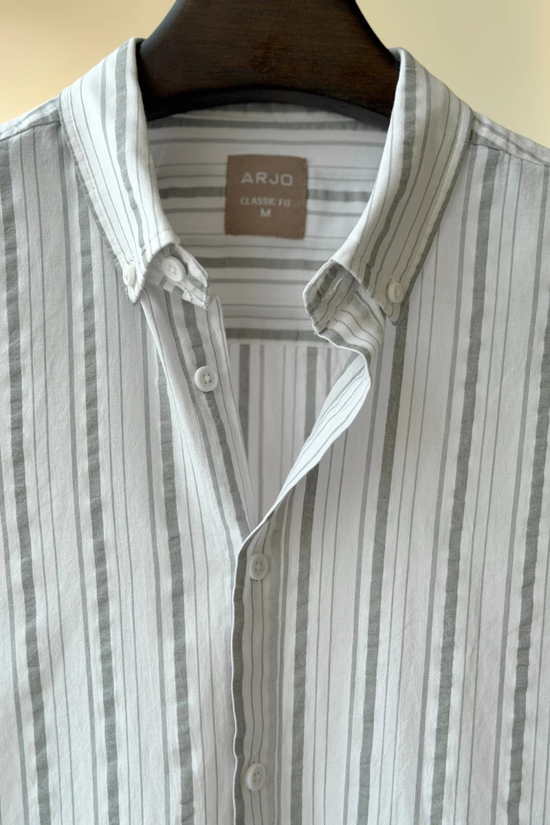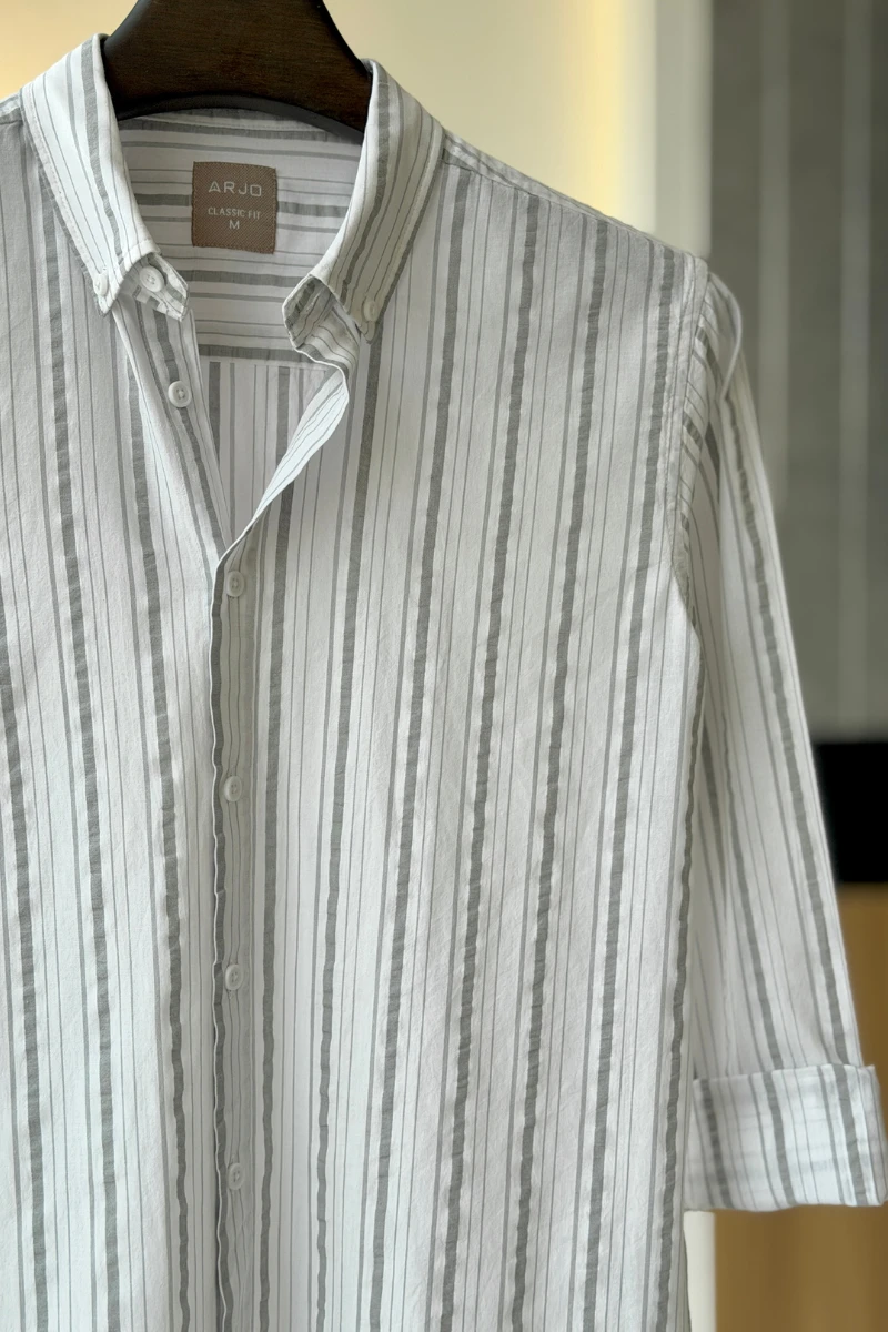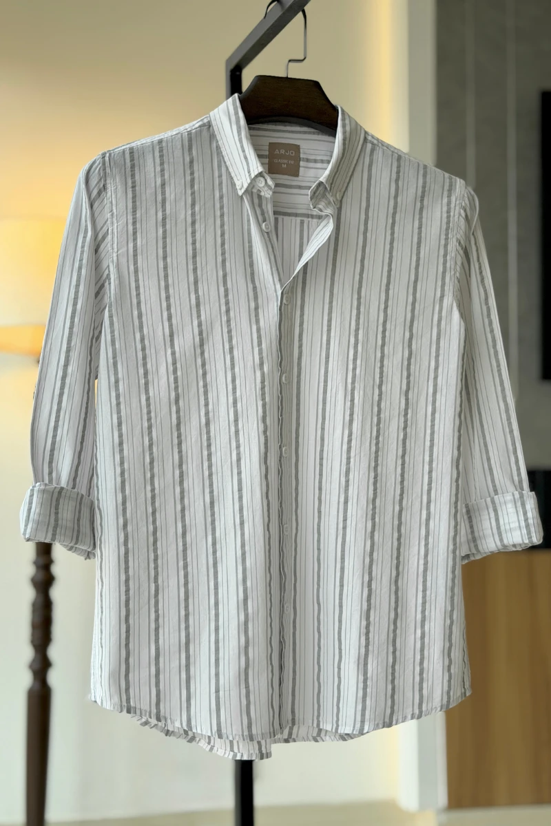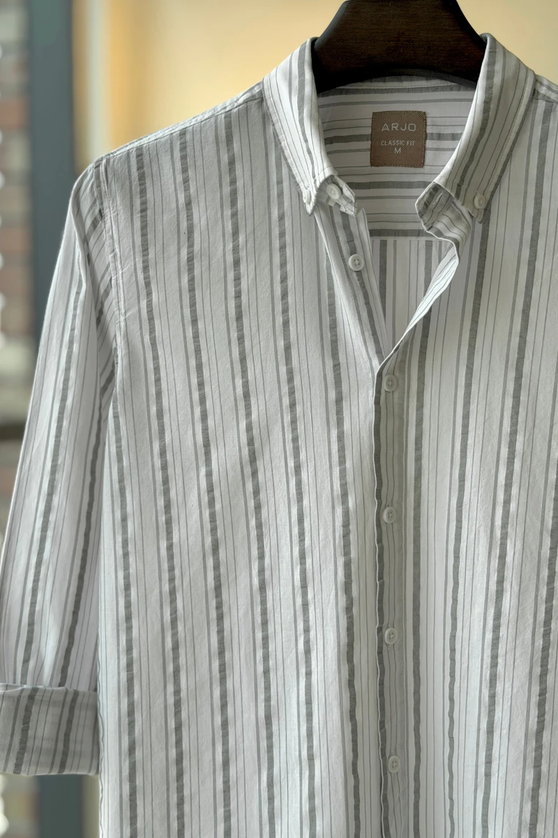 The White With Light Grey Stripes Shirt from Arjo is the perfect choice for effortless summer style. Crafted for comfort and breathability, this lightweight shirt keeps you cool during warmer days. With its relaxed fit and timeless stripes, it’s ideal for both casual outings and laid-back occasions. If you're looking for premium Full-sleeve shirts for men in BD, this versatile piece is a must-have. Stay stylish and comfortable all season long with Arjo.