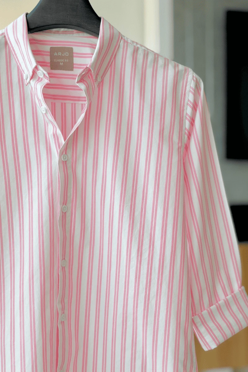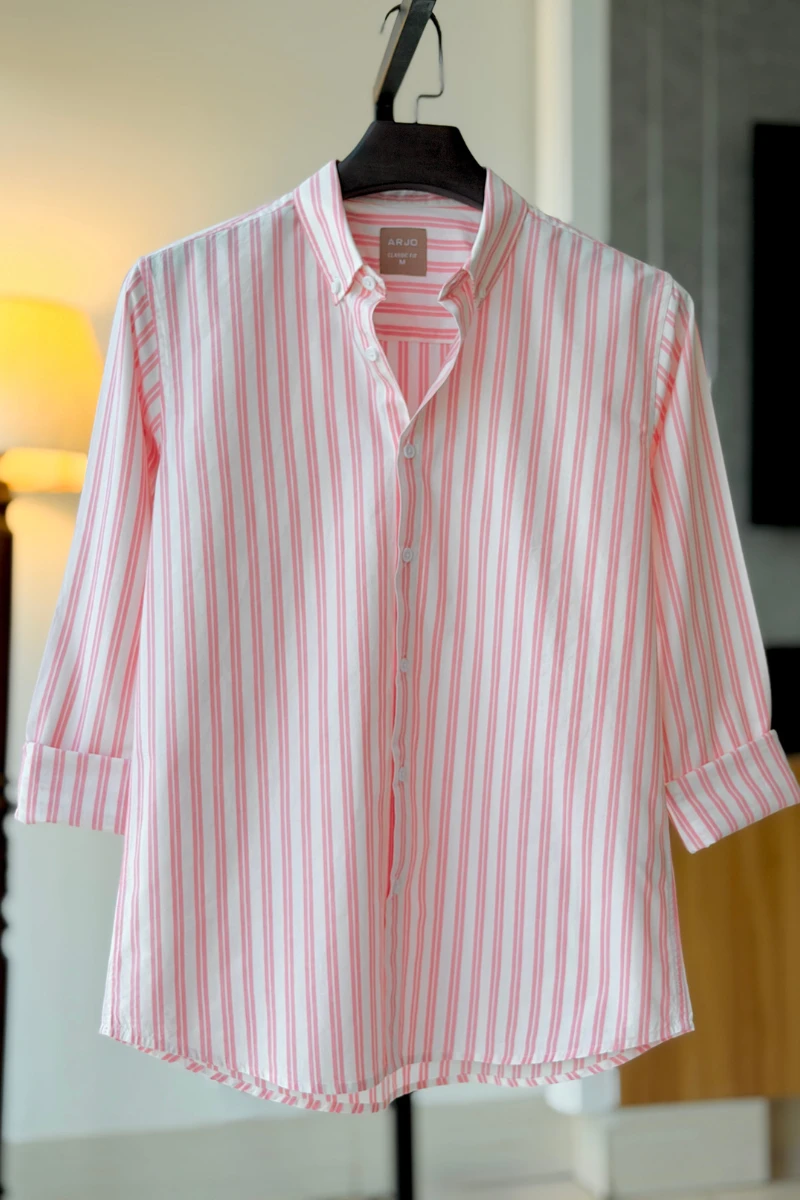 The White With Light Pink Stripes Shirt from Arjo is the perfect choice for effortless summer style. Crafted for comfort and breathability, this lightweight shirt keeps you cool during warmer days. With its relaxed fit and timeless stripes, it’s ideal for both casual outings and laid-back occasions. If you're looking for premium Full-sleeve shirts for men in BD, this versatile piece is a must-have. Stay stylish and comfortable all season long with Arjo.