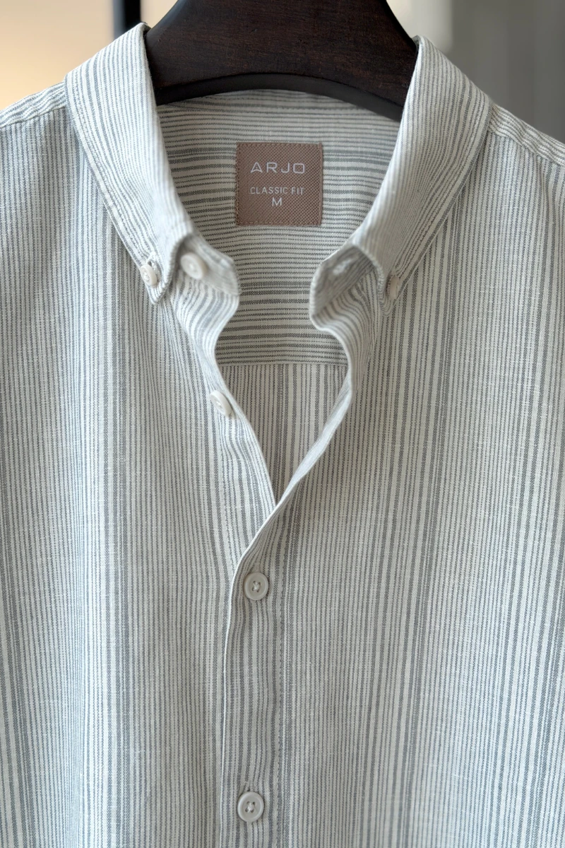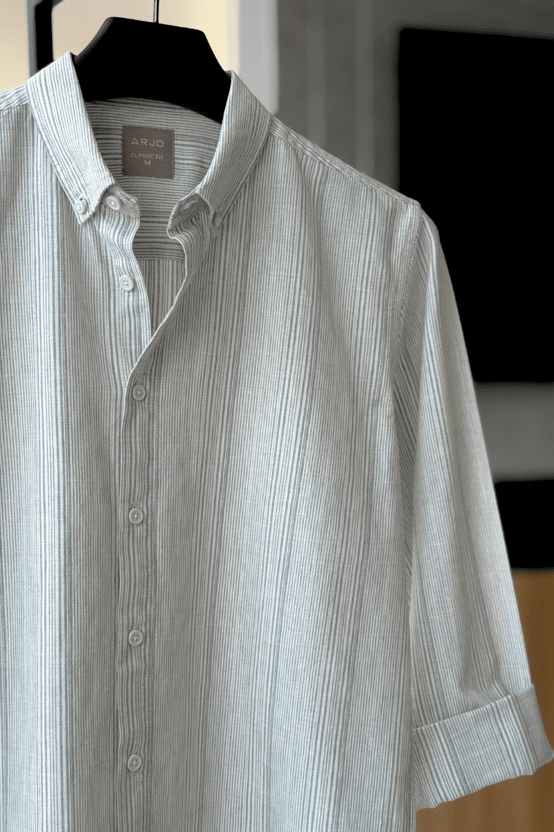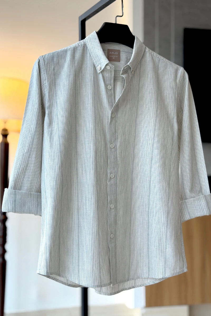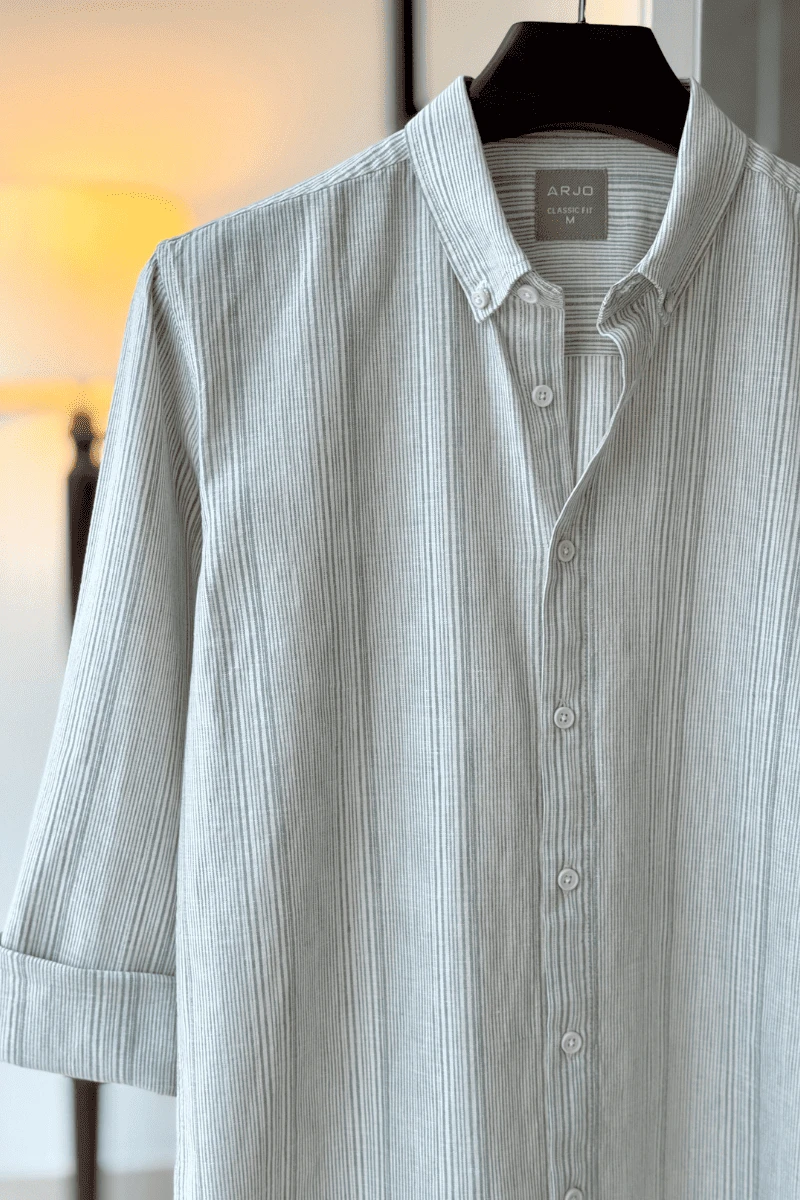The White With Thin Darker Gray Stripes Shirt from Arjo is the perfect choice for effortless summer style. Crafted for comfort and breathability, this lightweight shirt keeps you cool during warmer days. With its relaxed fit and timeless stripes, it’s ideal for both casual outings and laid-back occasions. If you're looking for premium Full-sleeve shirts for men in BD, this versatile piece is a must-have. Stay stylish and comfortable all season long with Arjo.