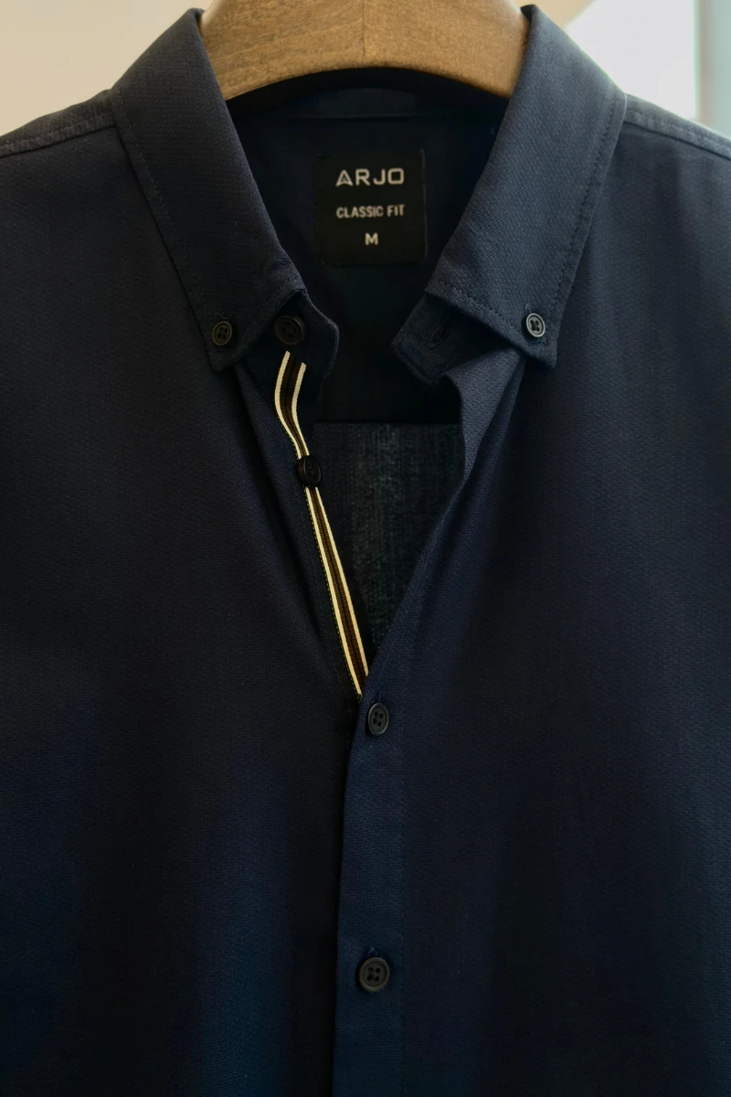 The Deep Vavy Tone And a Subtle Contrasting Twill Tape Casual Shirt from Arjo is the perfect choice for effortless summer style. Crafted for comfort and breathability, this lightweight shirt keeps you cool during warmer days. With its relaxed fit and timeless stripes, it’s ideal for both casual outings and laid-back occasions. If you're looking for premium Full-sleeve shirts for men in BD, this versatile piece is a must-have. Stay stylish and comfortable all season long with Arjo.