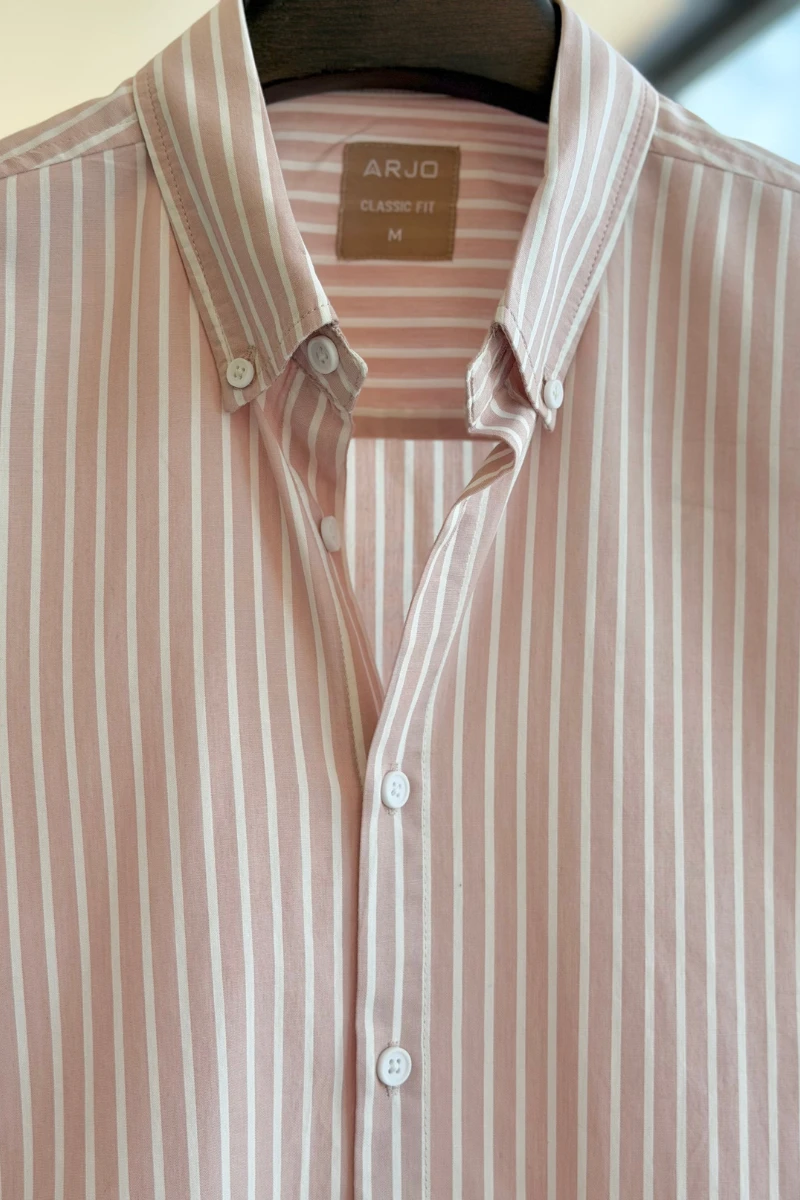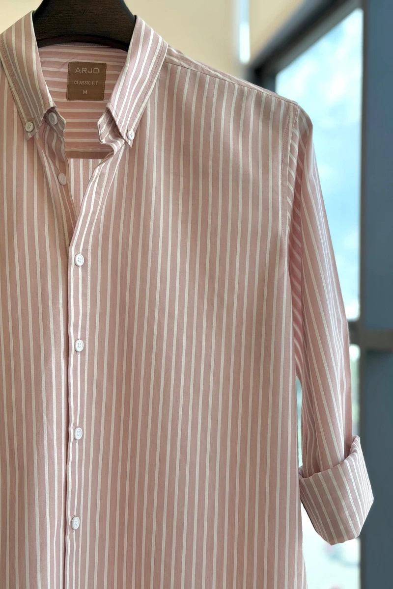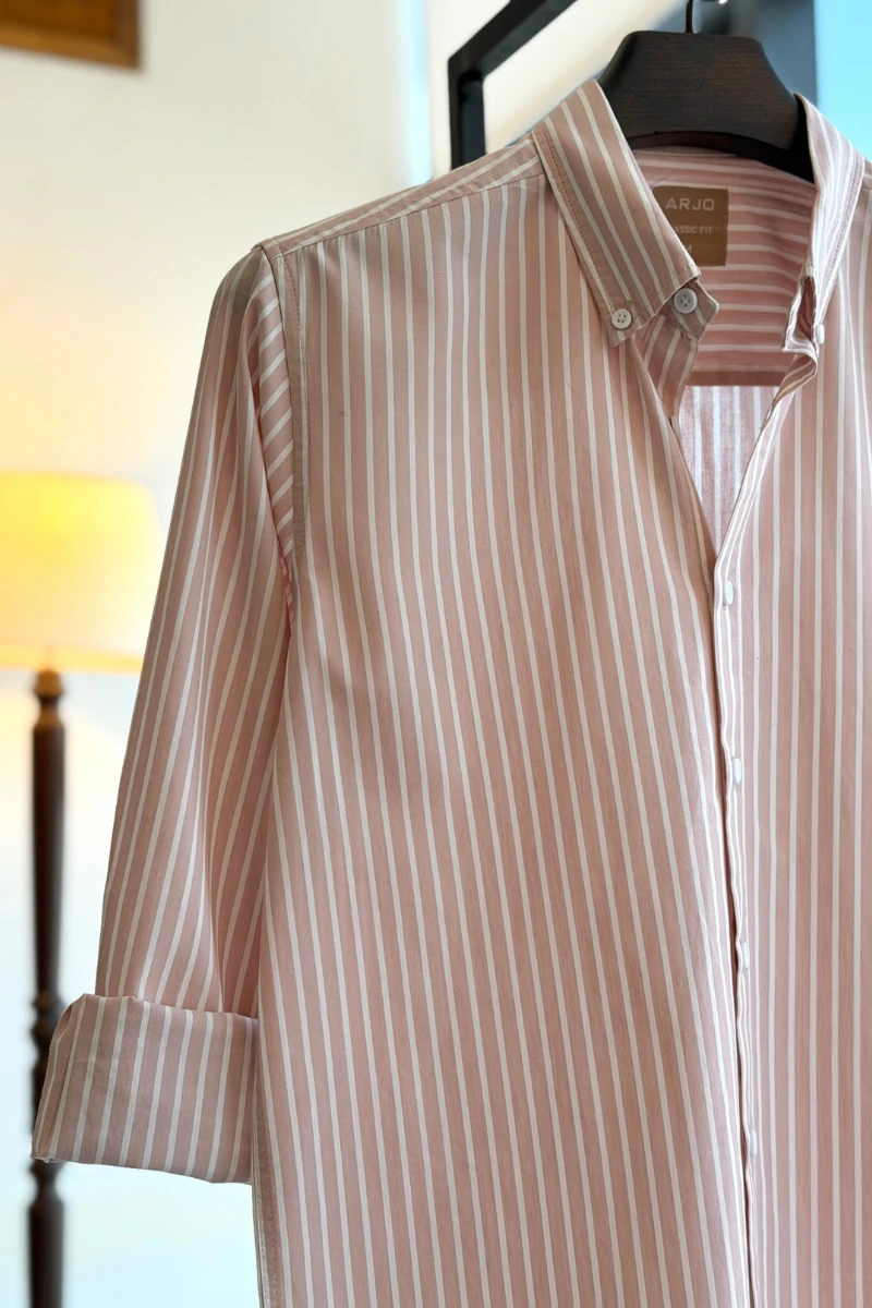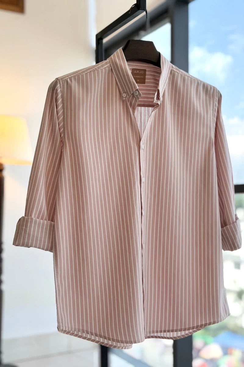 The Dusty Pink with White Stripes Shirt from Arjo is the perfect choice for effortless summer style. Crafted for comfort and breathability, this lightweight shirt keeps you cool during warmer days. With its relaxed fit and timeless stripes, it’s ideal for both casual outings and laid-back occasions. If you're looking for premium Full-sleeve shirts for men in BD, this versatile piece is a must-have. Stay stylish and comfortable all season long with Arjo.